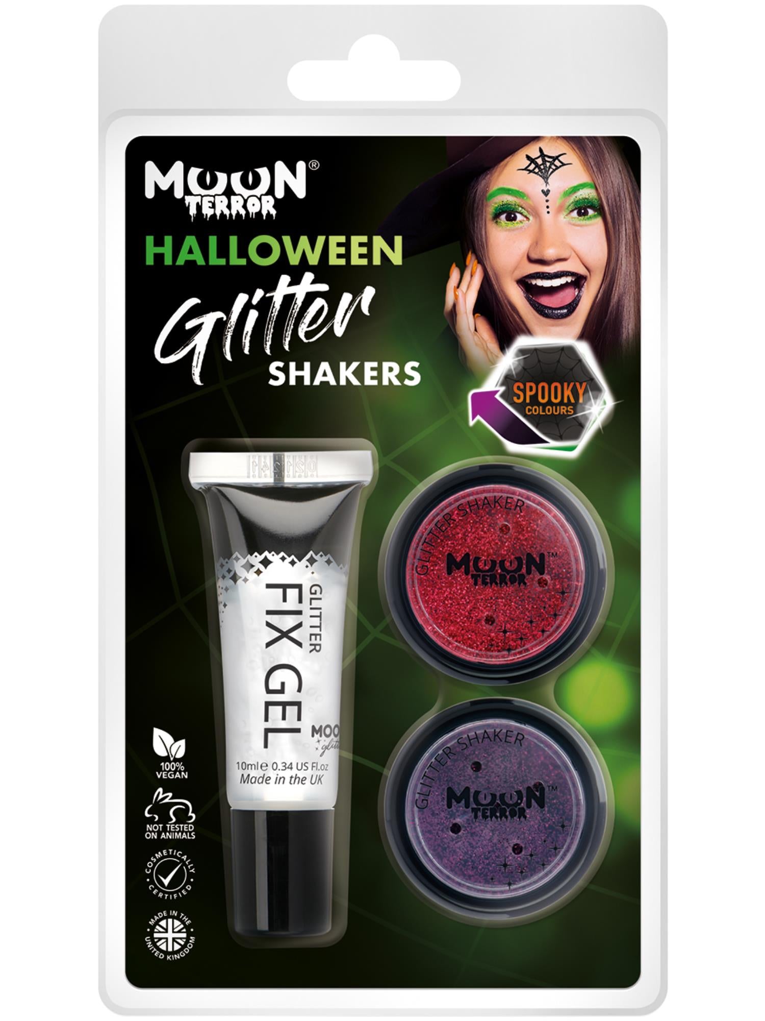 Moon Terror Halloween Glitter Shakers, Clamshell 4.2g - Fix Gel, Blood Red, Poison Purple