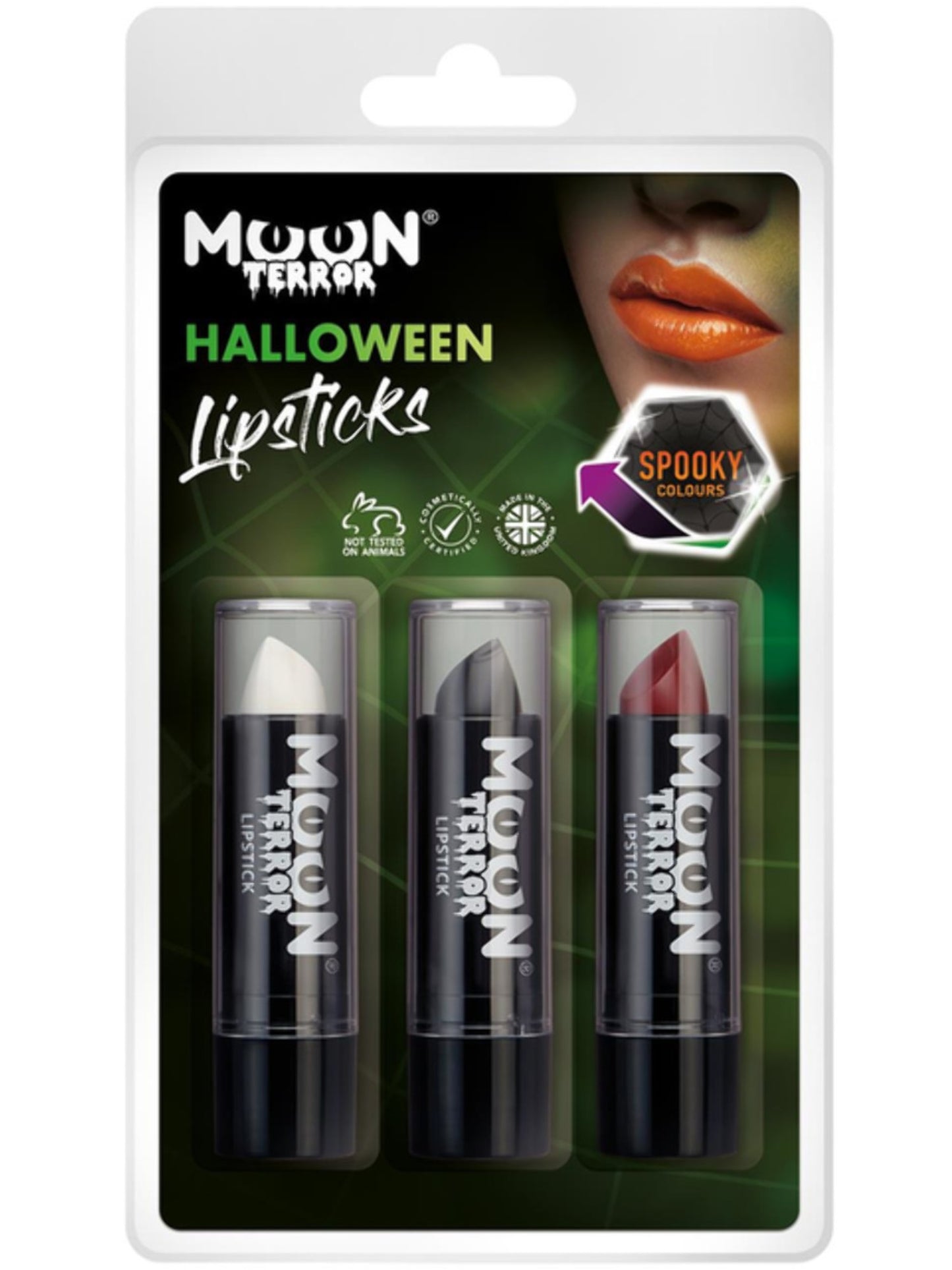 Moon Terror Halloween Lipstick, Red Clamshell 4.2g - White, Black, Red