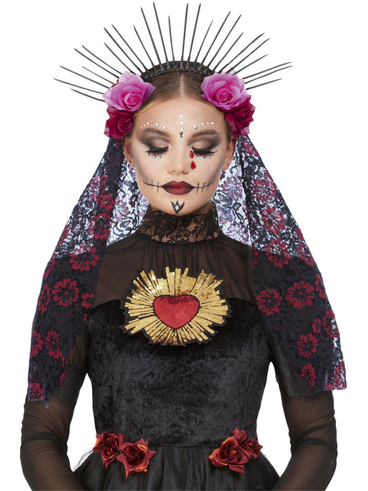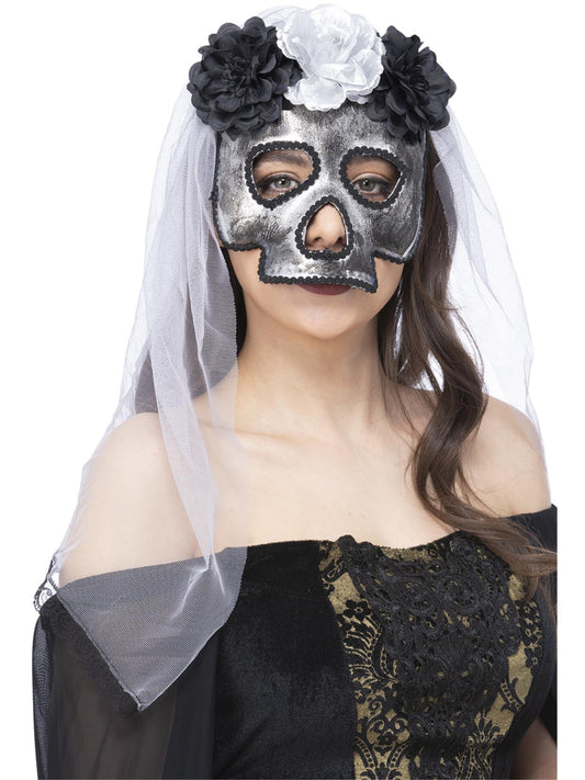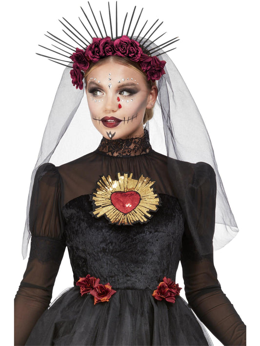 • Bandeau Deluxe Jour des morts, avec roses et voile