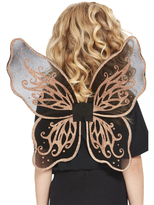 • Ailes de papillon plantes noires, 43cm/17in, Or, avec paillettes