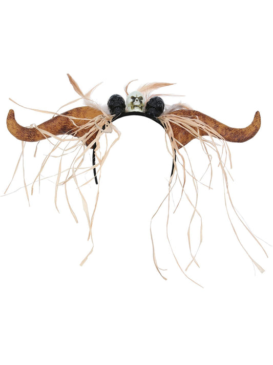 • Bandeau avec cornes métalliques diaboliques, Rouge et noir, Avec des plumes de Marabout