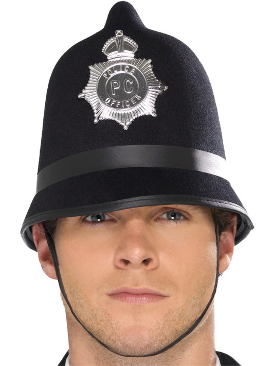 • Chapeau de police de luxe, Noir, Faux cuir, avec un bord intérieur élastique