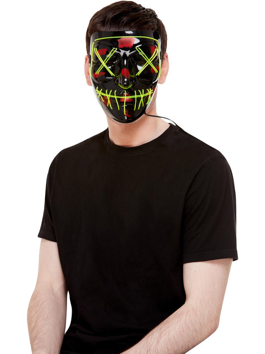 • Masque pour le visage à coutures, lumineux (vert fluo), Noir, à élastique