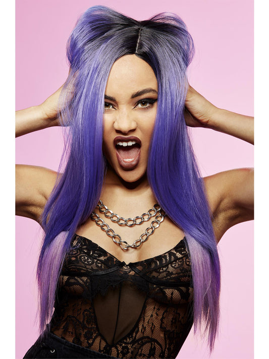 Perruque ruche sorcière Medeia, Gris, Longueet bouclée avec haut ruche