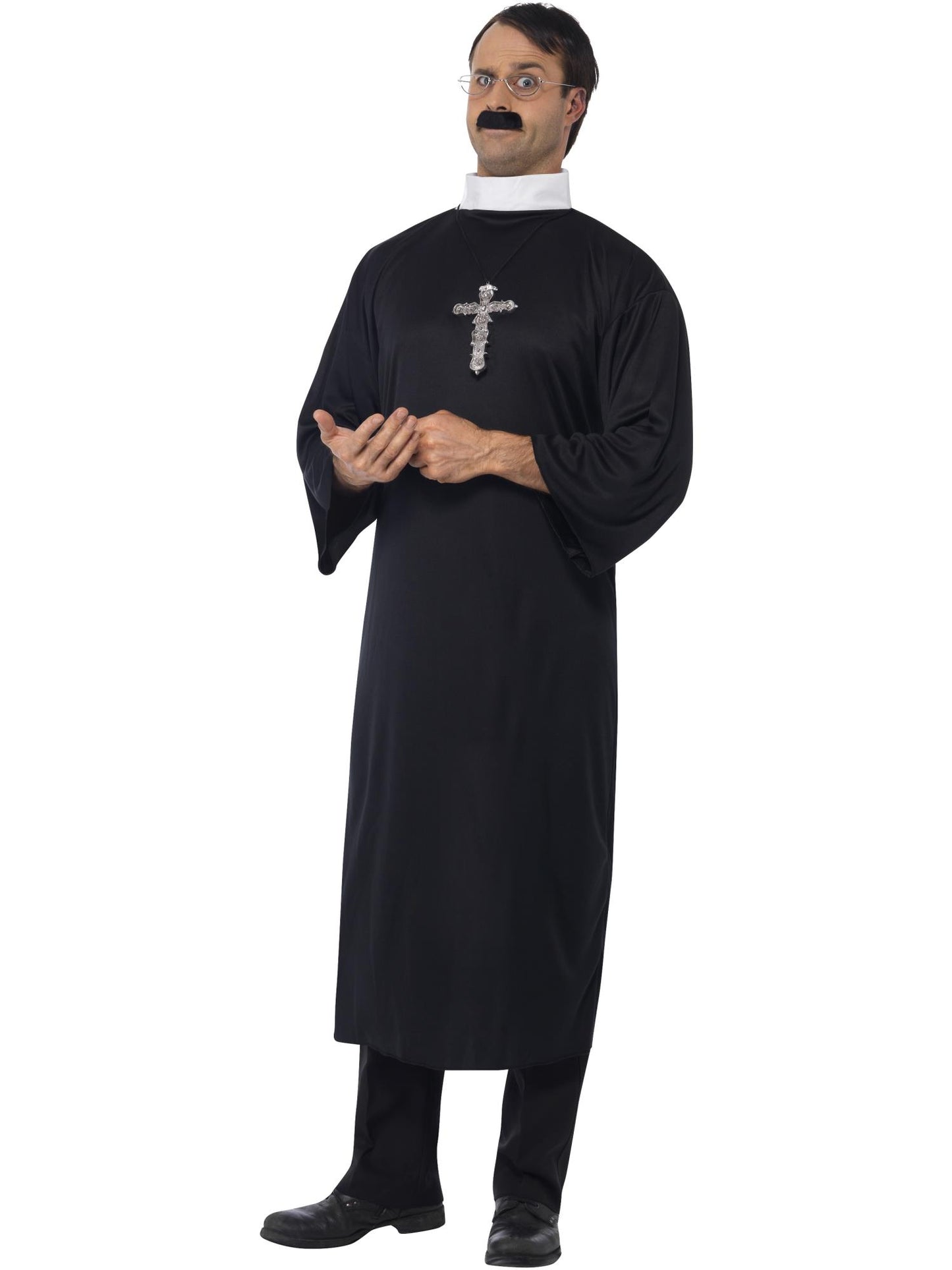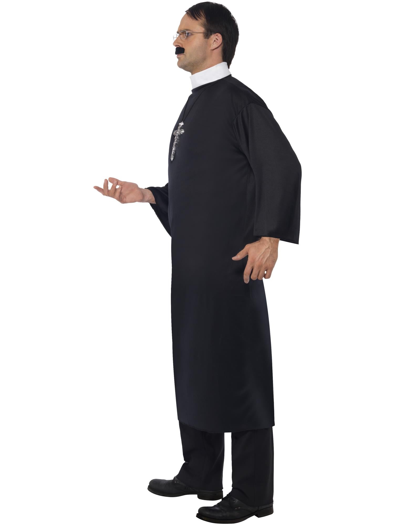 Priest Costume, Black with Robe, Collar & Cross Necklace