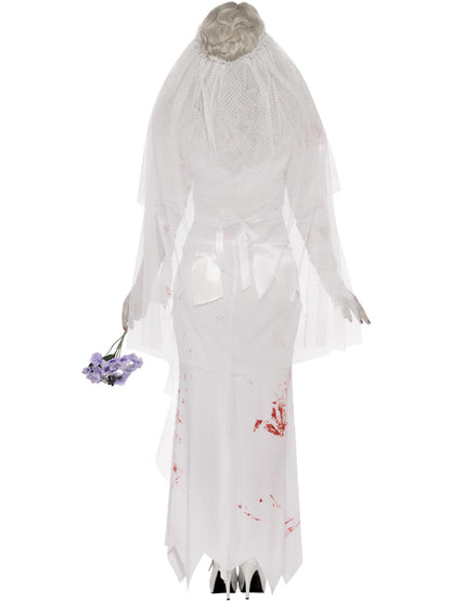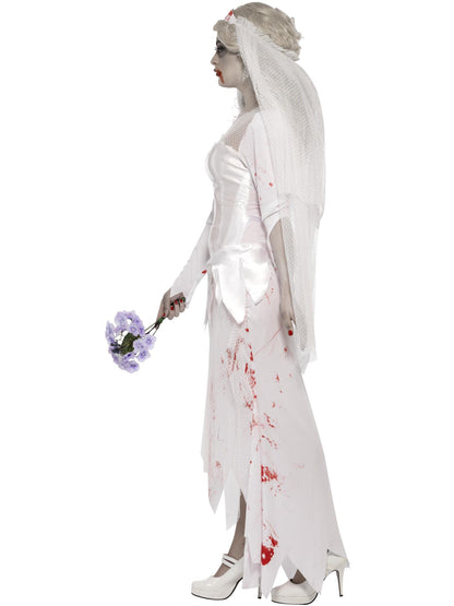 Till Death Do Us Part Zombie Bride Costume, White with Dress, Veil and Bouquet