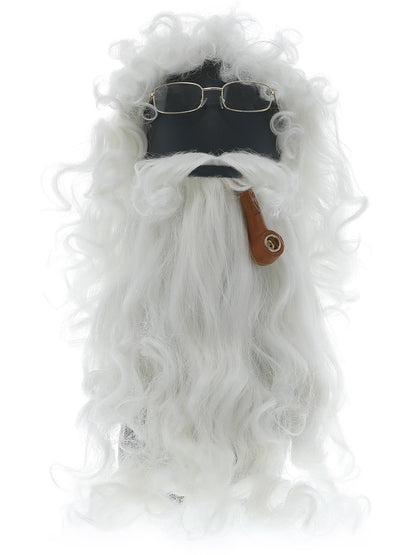 Santa Dress Up Kit, White with Wig, Beard, Glasses & Pipe, Deluxe