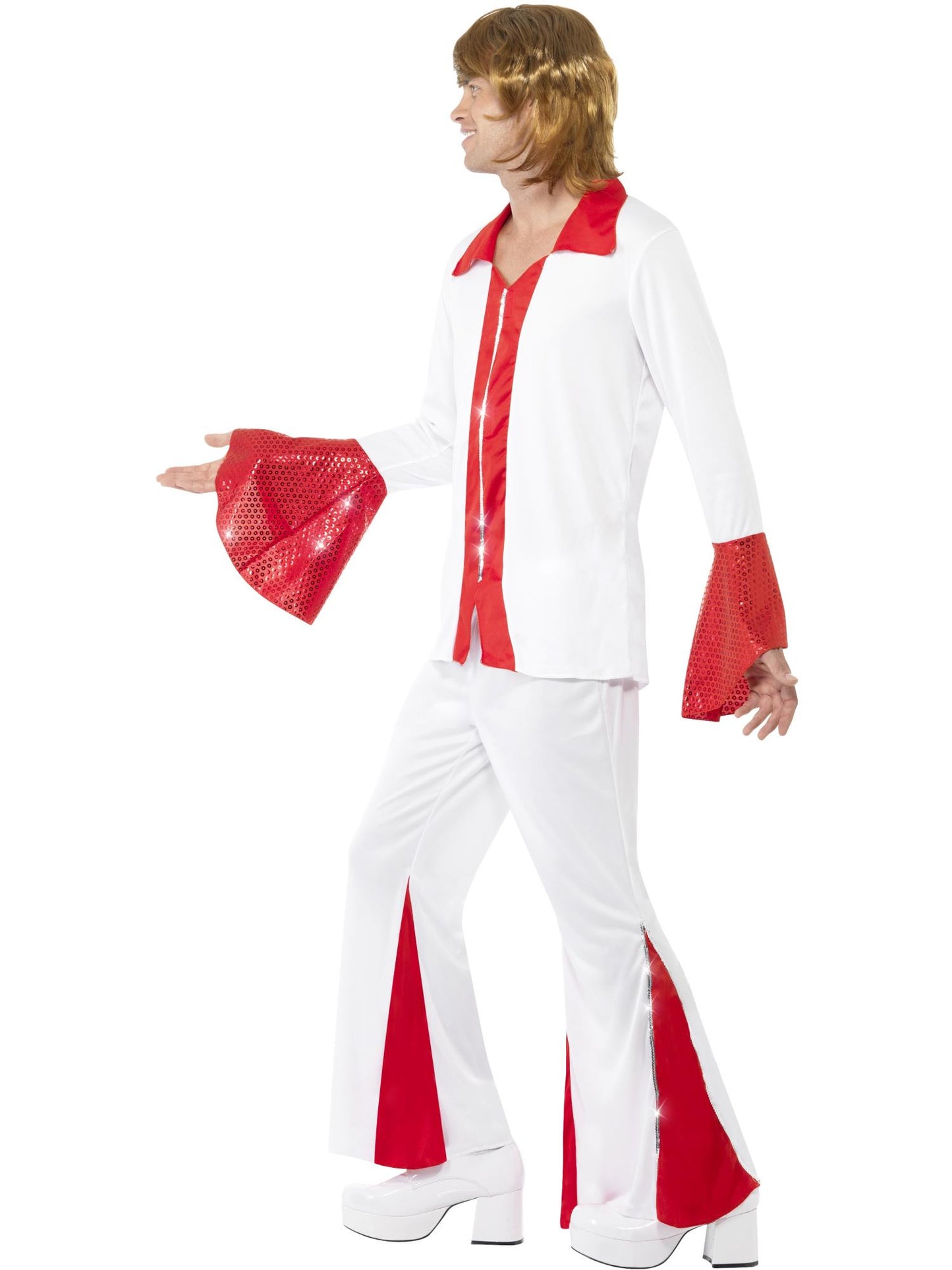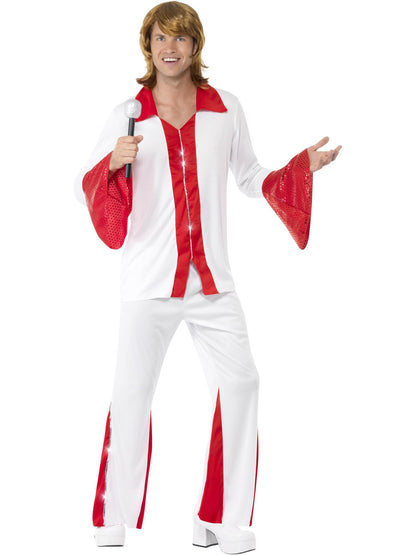 Super Trooper Male Costume, White & Red Shirt and Trousers