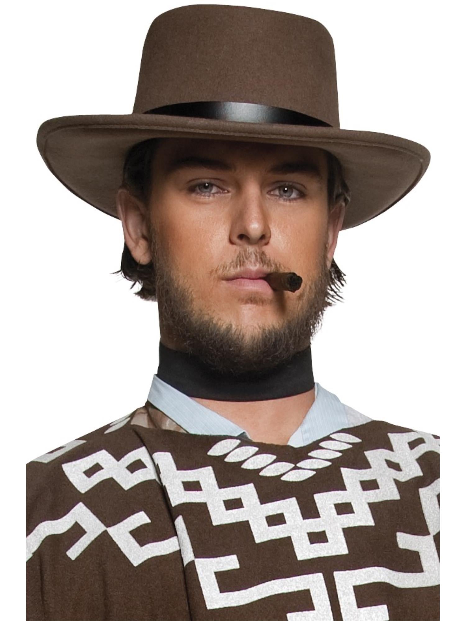 Authentic Western Wandering Gunman Hat, Brown with Black Rim