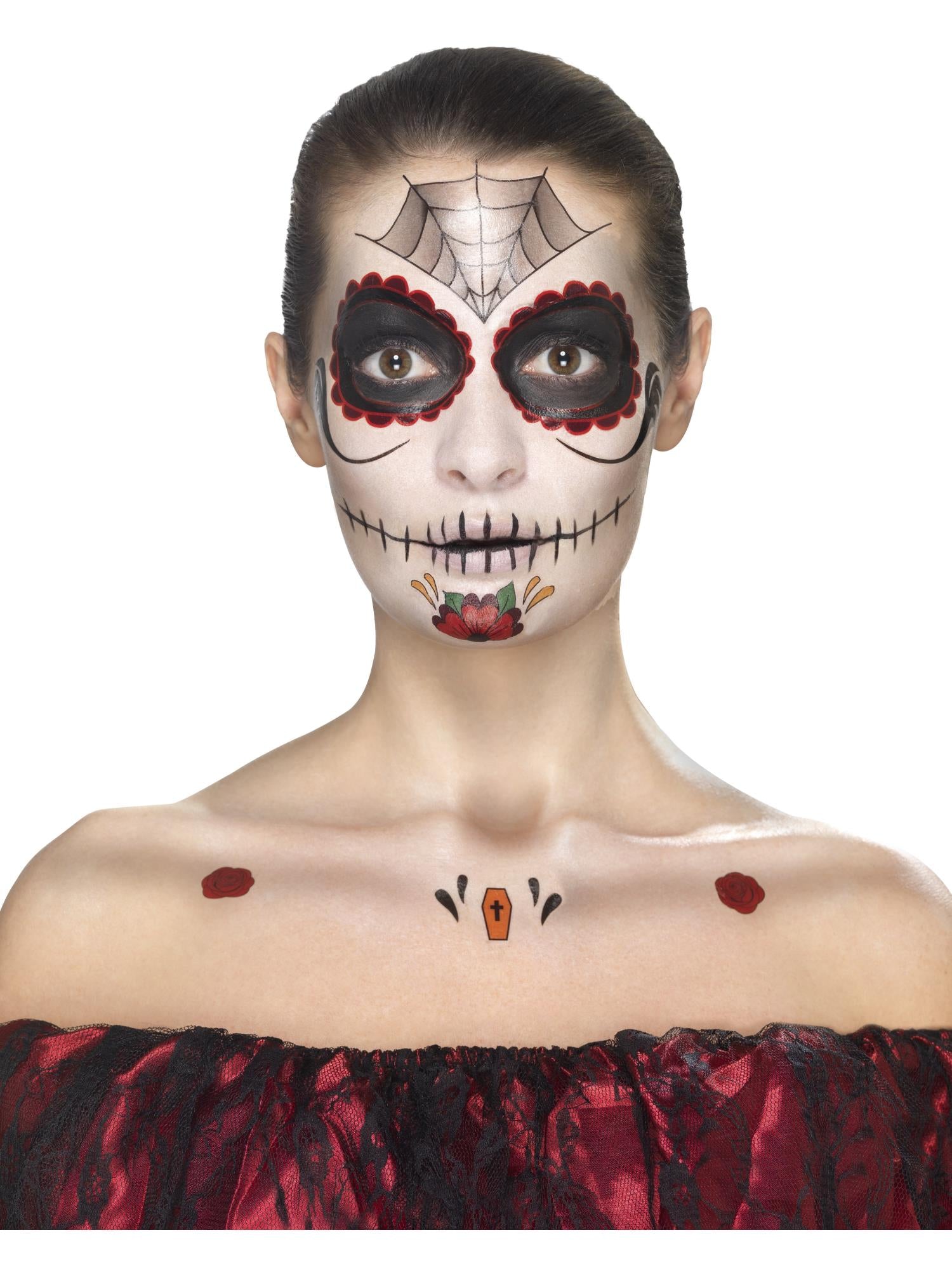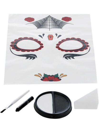 Smiffys Make-Up FX, Day of the Dead Kit, Aqua, Red Transfers, Face Paints, Crayon & Applicators