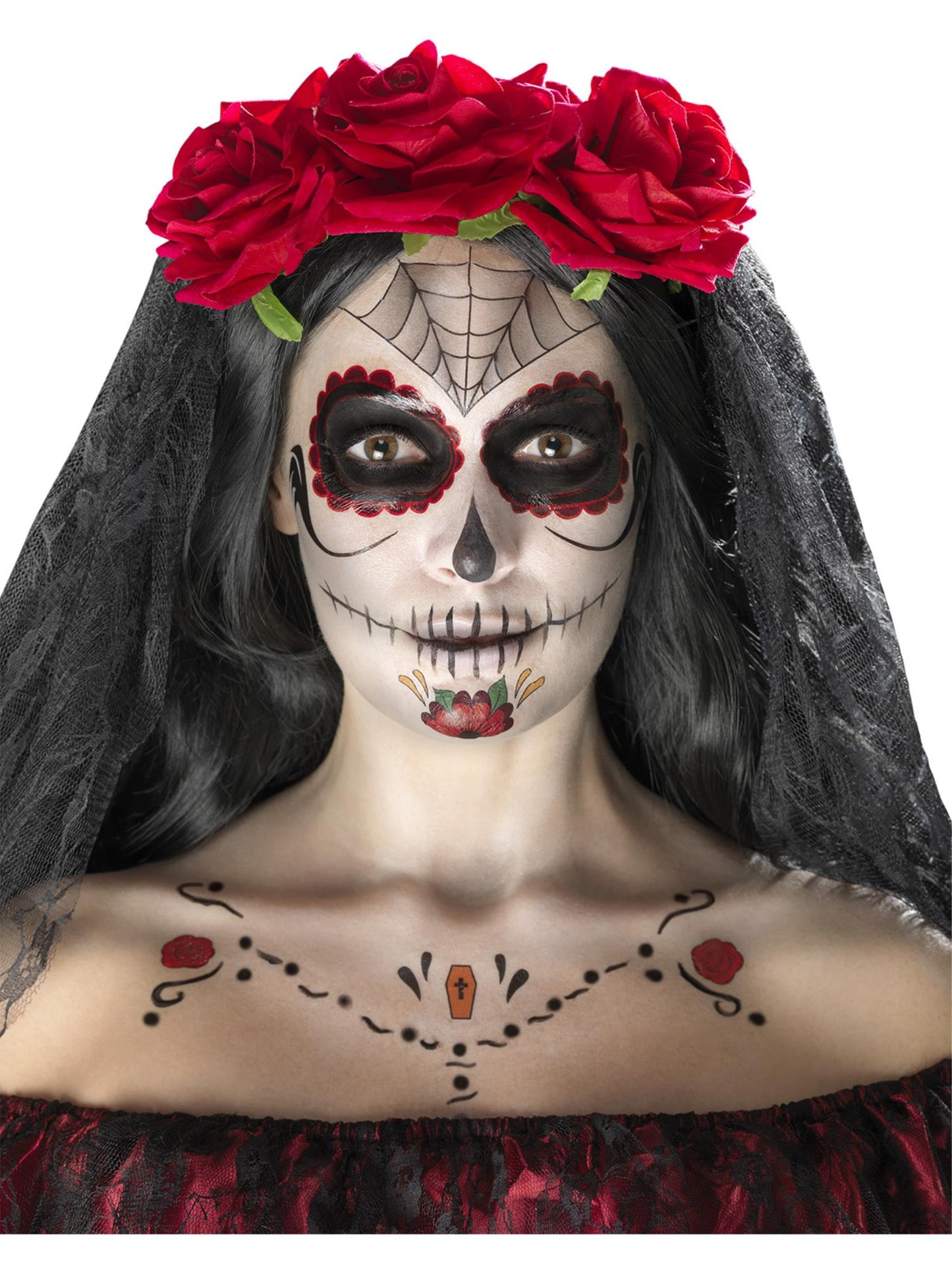Kit tatouage visage Jour des morts, Aqua, Rouge et noir, Peinture pour visage, crayon et applicateurs