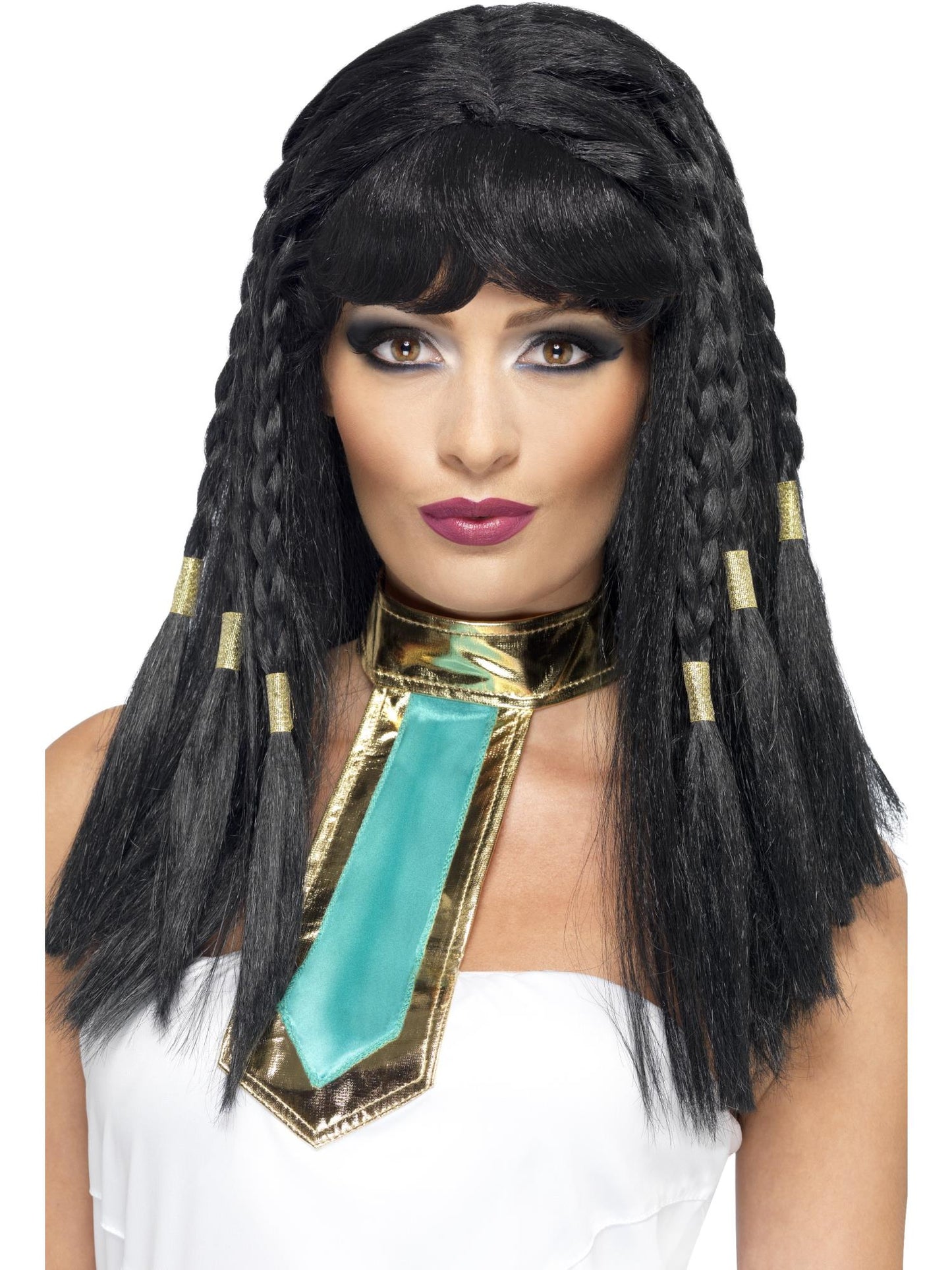 Perruque cléopatre, noire, à nattes avec bordure blonde