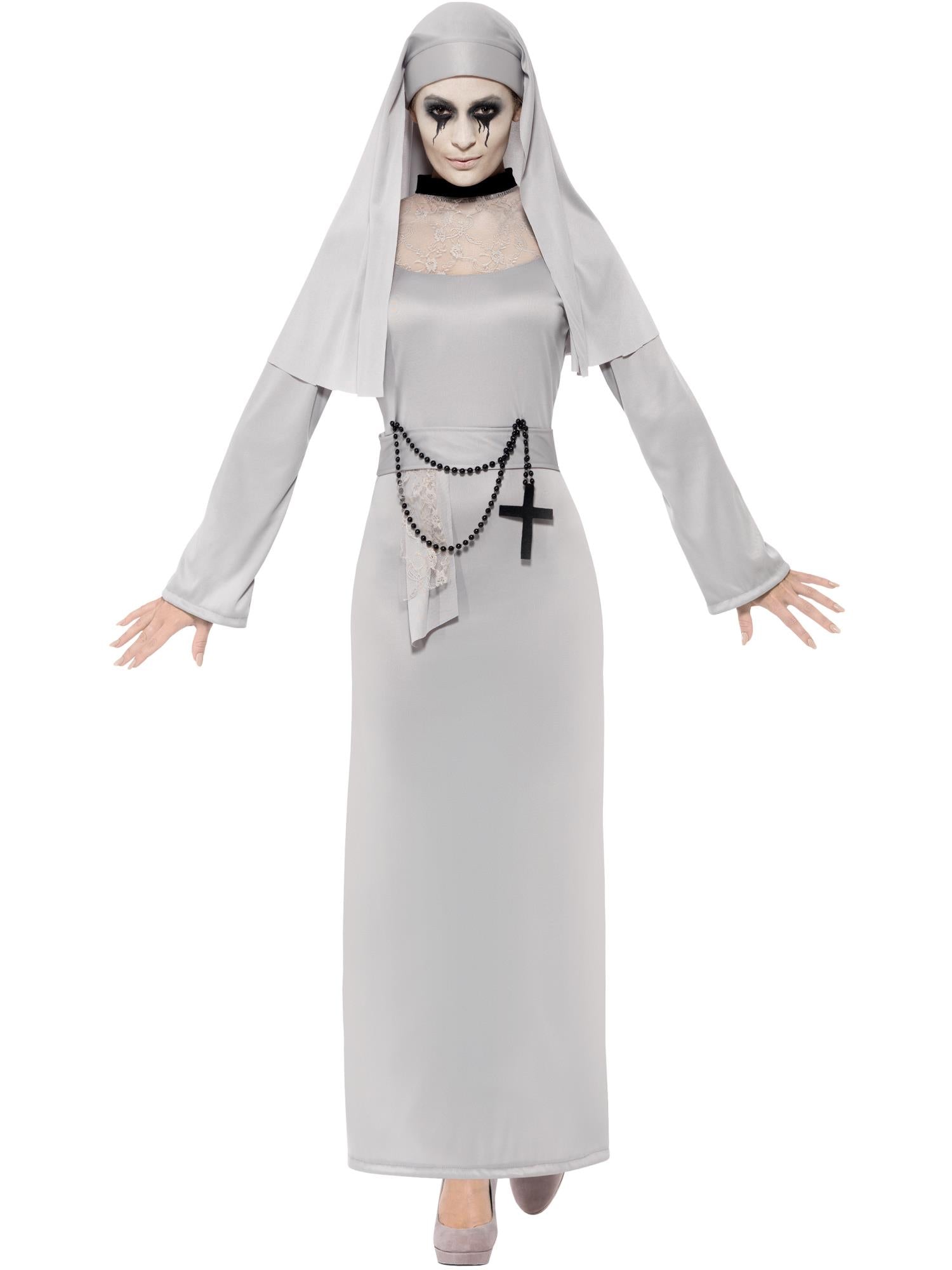 Gothic Nun Costume, Grey with Dress & Headpiece