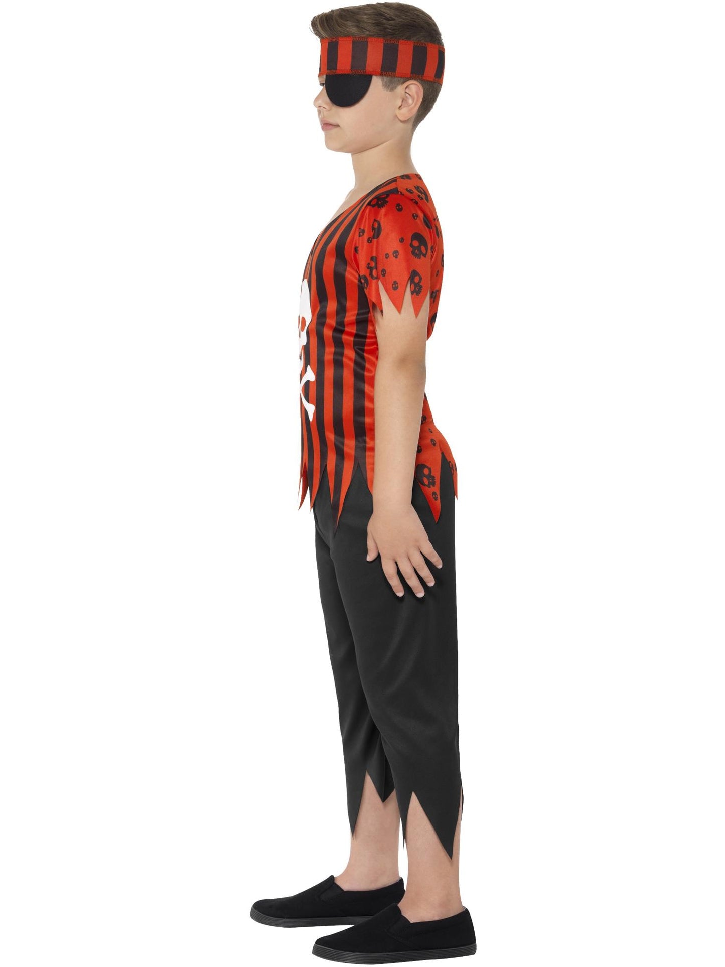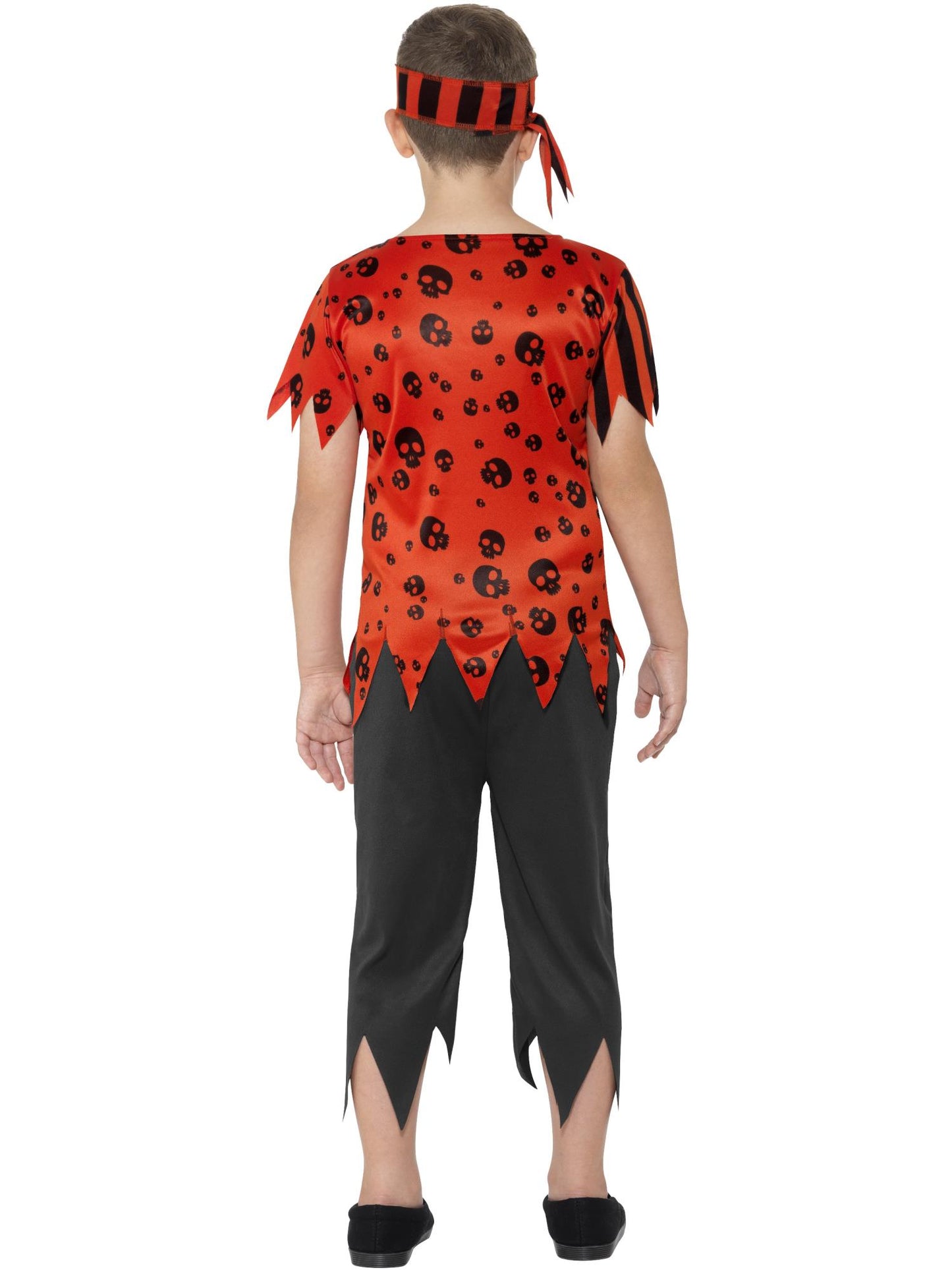 Jolly Roger Pirate Costume, Red with Top, Trousers & Headband