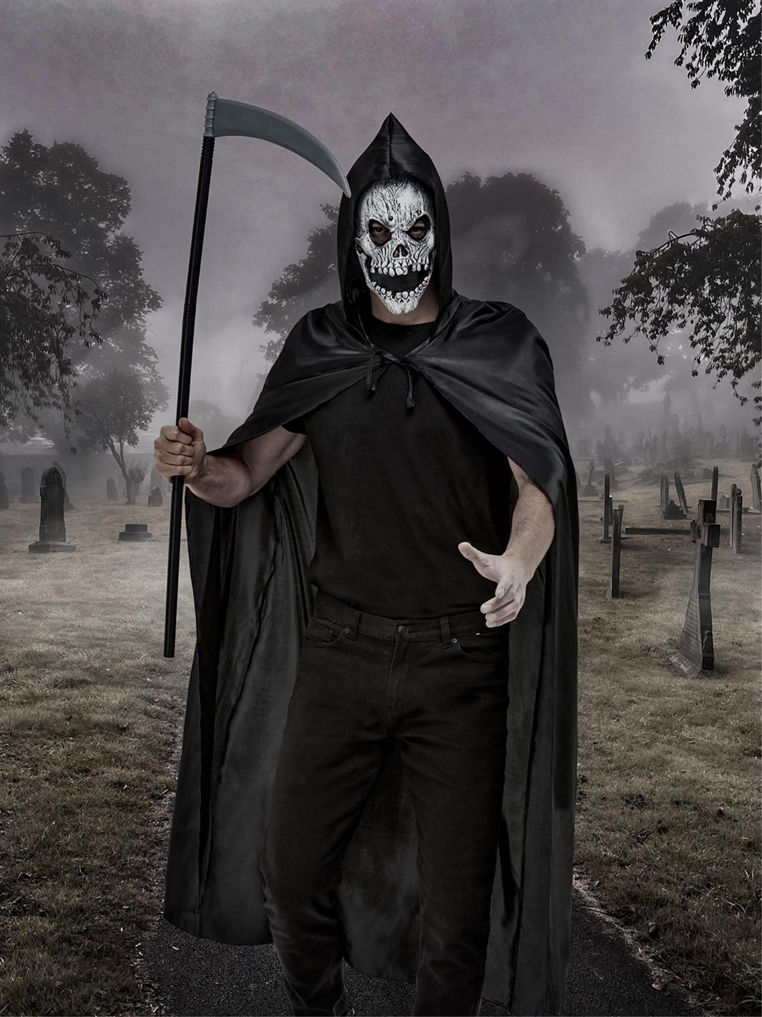 Kit la Faucheuse, Noir, avec cape, masque et faux