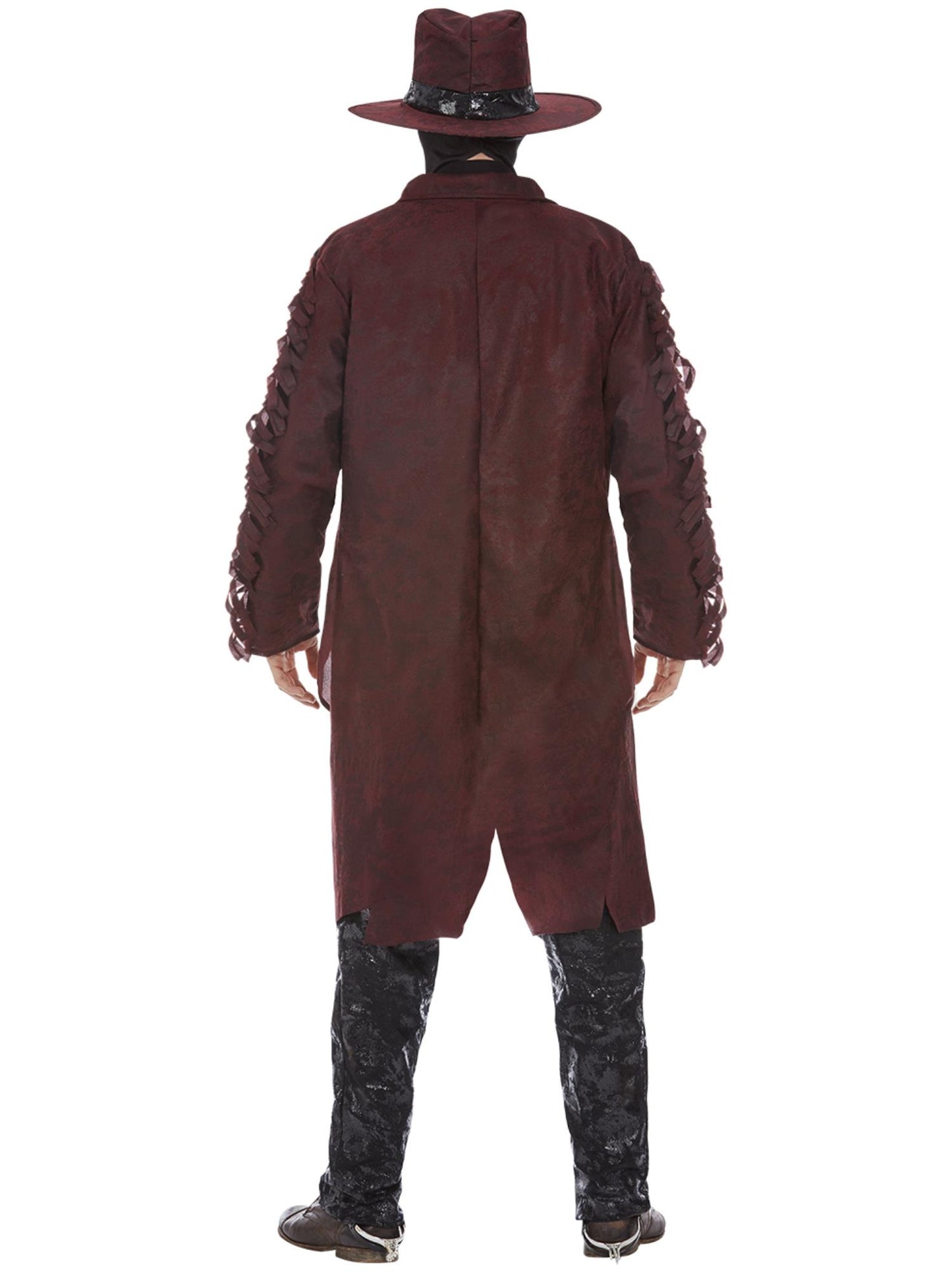 Déguisement de cowboy de western sombre, Bordeaux, Veste, jambières, étui, chapeau et masque