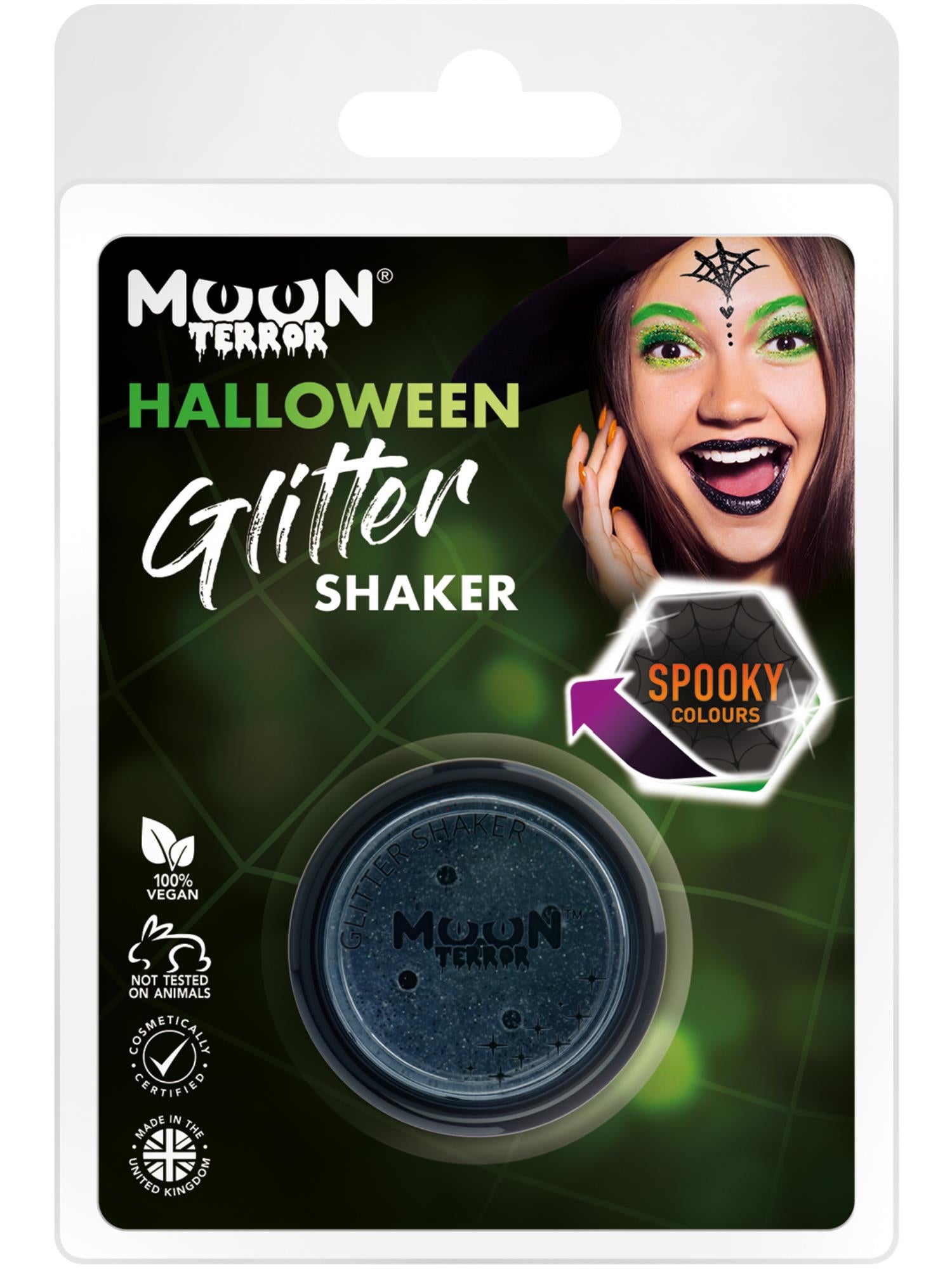 Moon Terror Halloween Glitter Shakers, Black Clamshell 4.2g