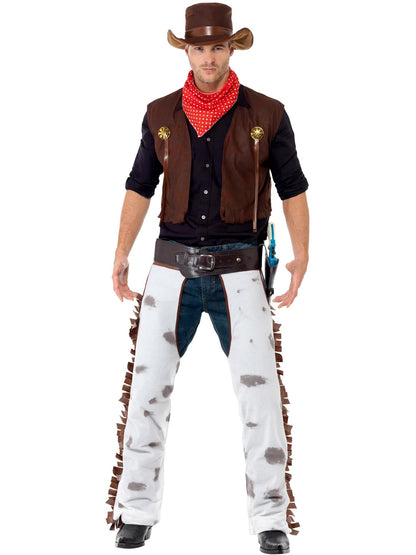Cowboy Costume, Brown with Waistcoat, Chaps, Scarf & Hat