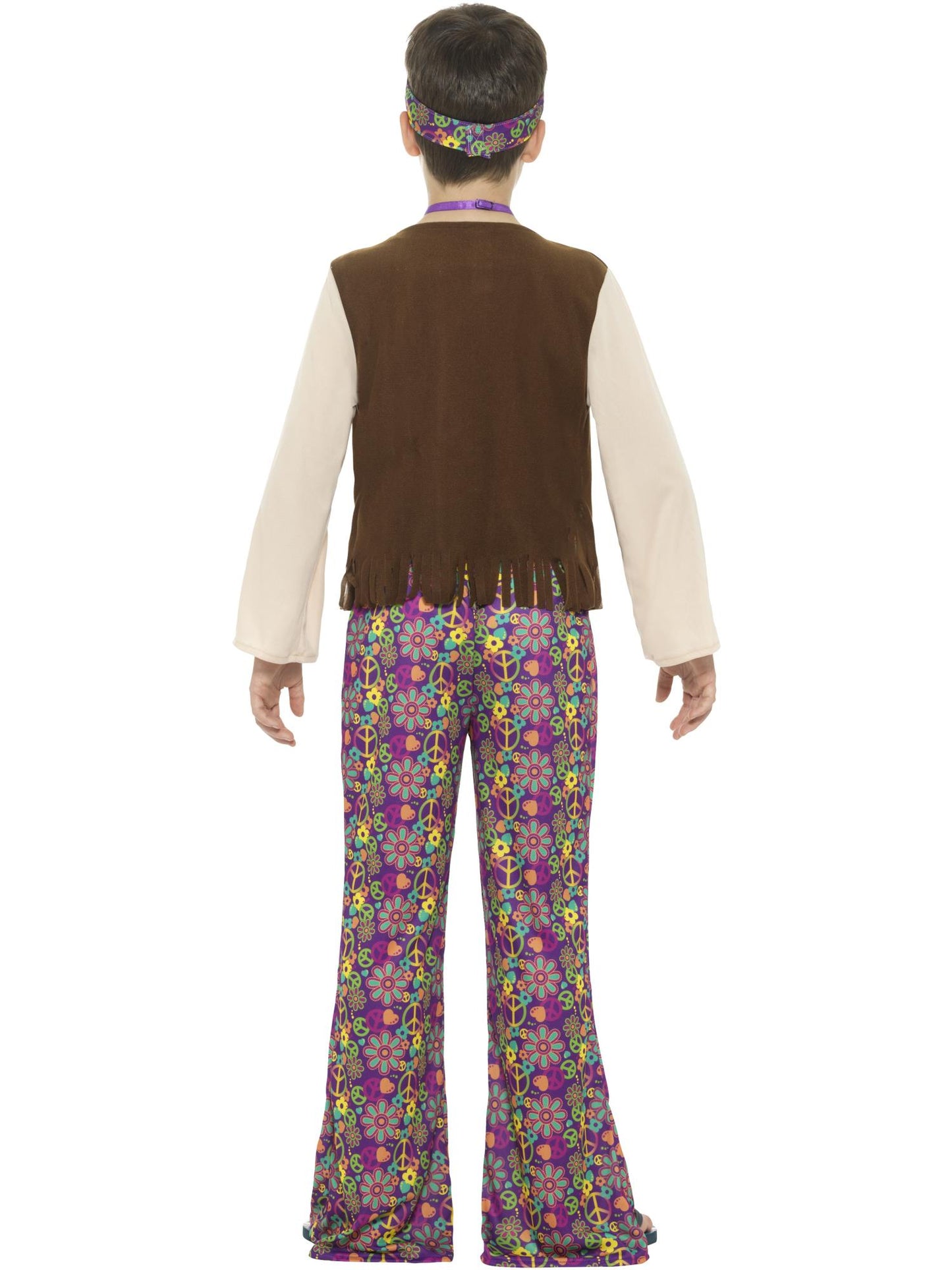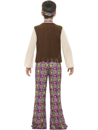 Hippie Boy Costume, with Top, Attached Waistcoat, Trousers, Medallion & Headband