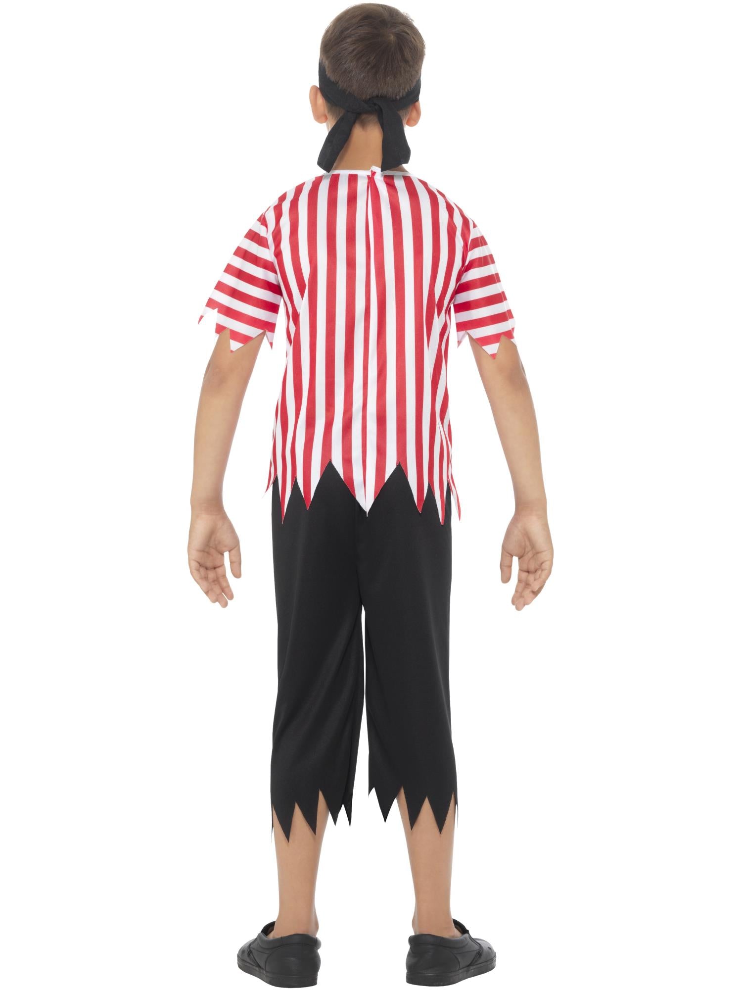 Jolly Pirate Boy Costume, Red & White with Top, Trousers, Bandana & Eyepatch