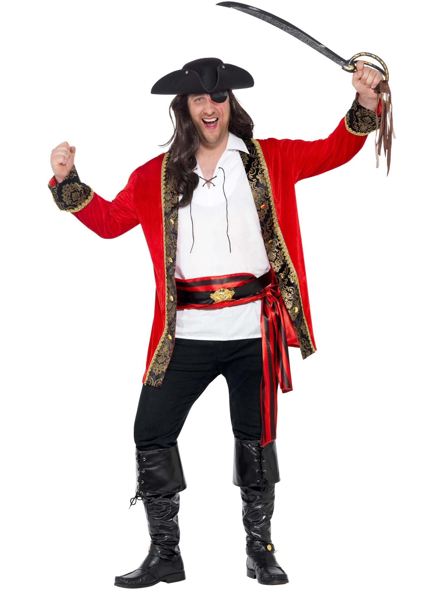 Curves Pirate Captain Costume, Red with Jacket, Shirt & Waist Sash