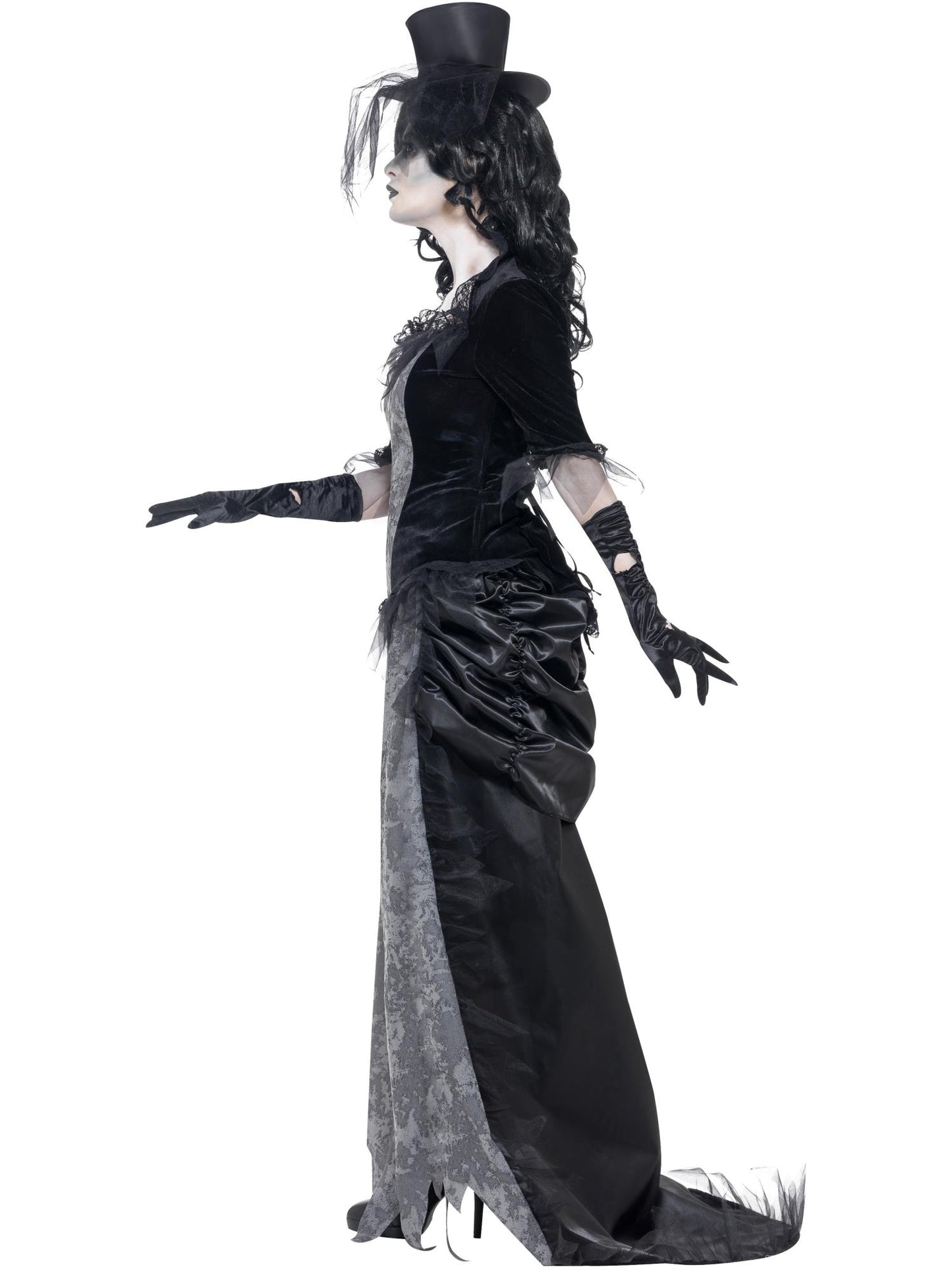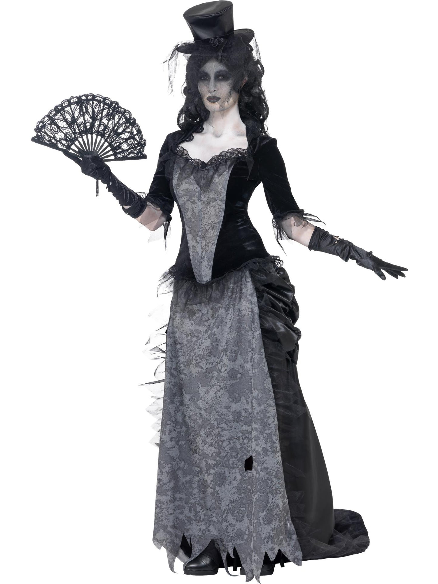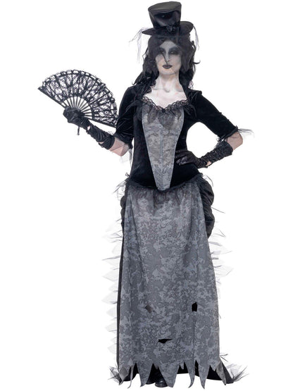 Ghost Town Black Widow Costume, Grey with Top, Skirt, Hat