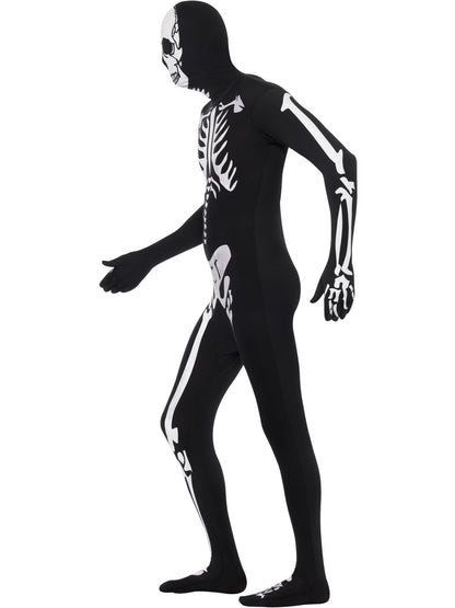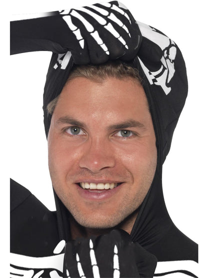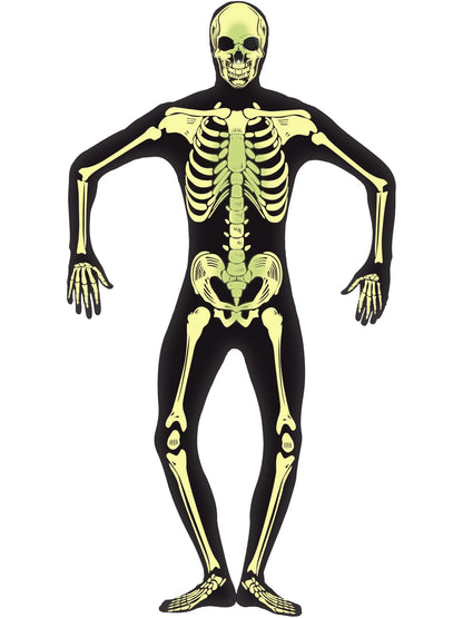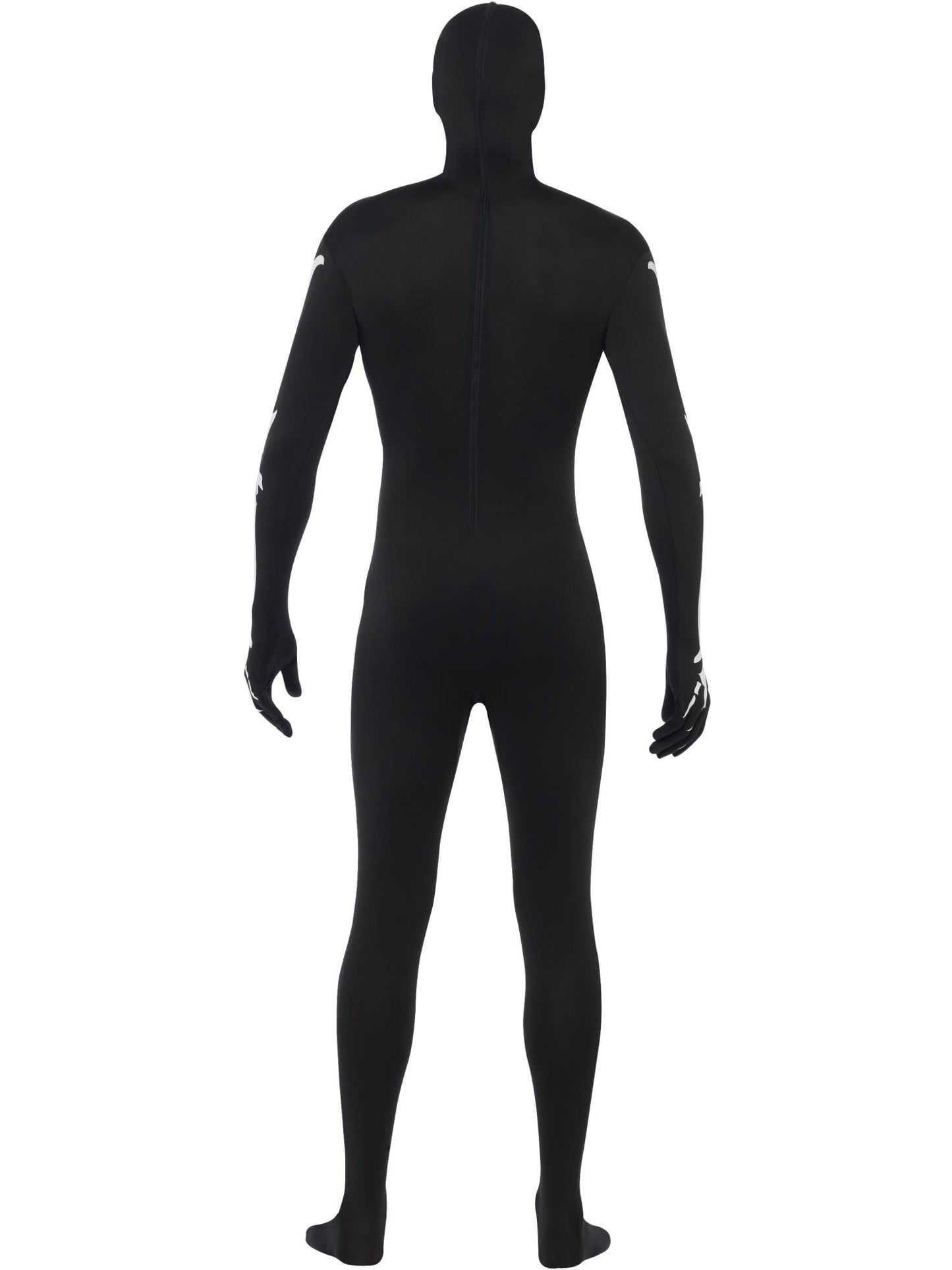 Skeleton Second Skin Costume, Black with Concealed Fly & Under Chin Opening, GID