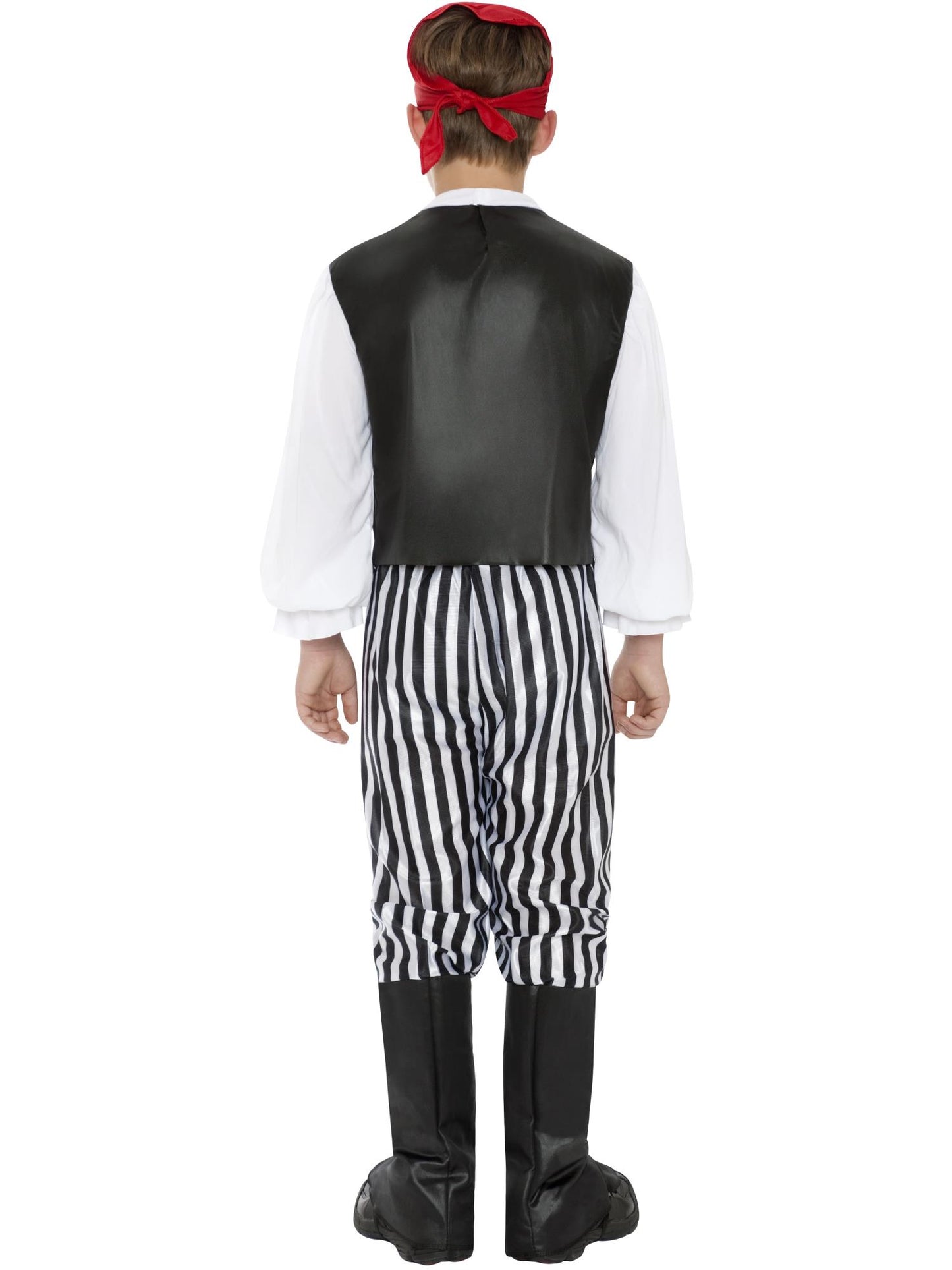 Pirate Costume, Black & White with Shirt, Trousers, Bootcovers, Headscarf & Belt