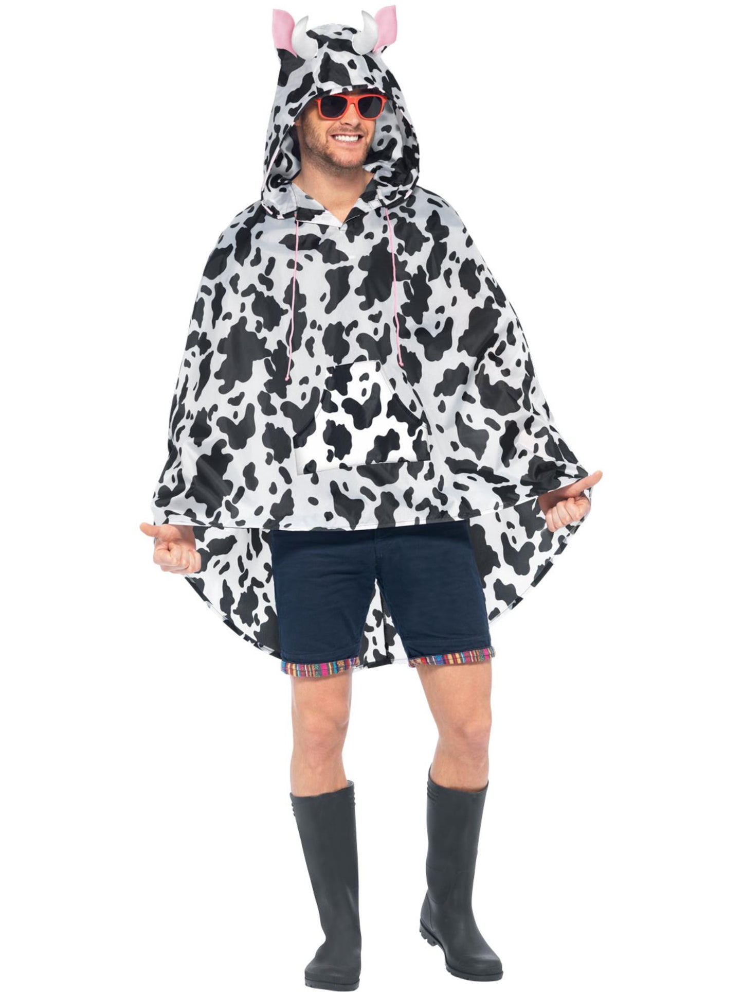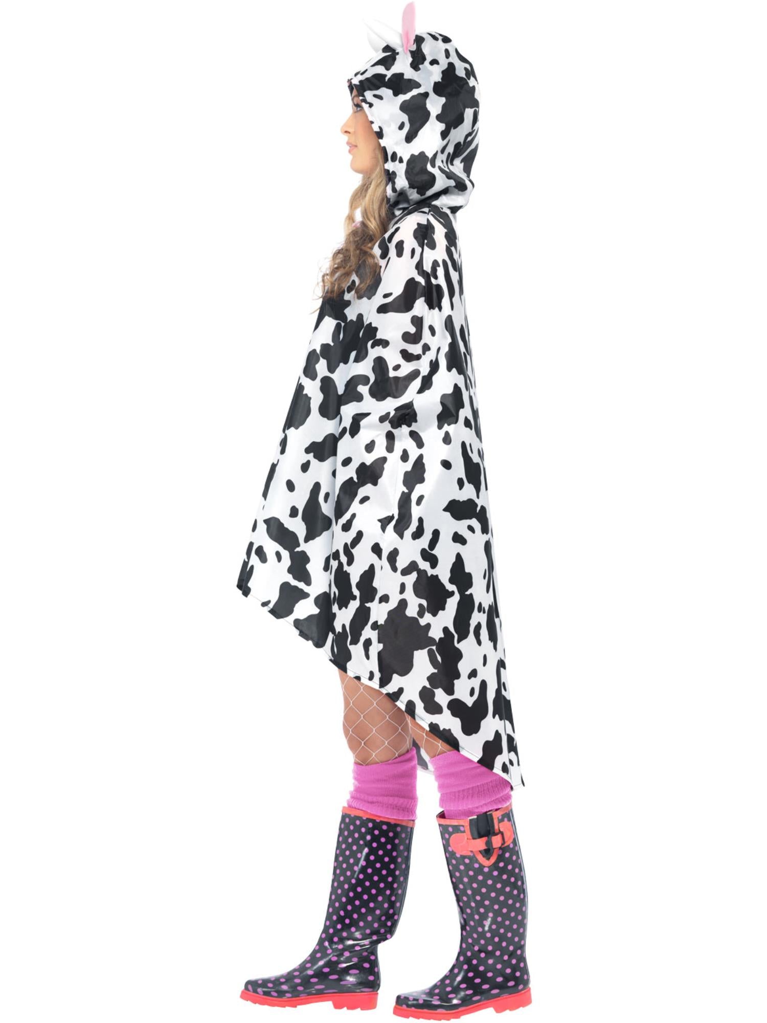 Cow Party Poncho, Black & White with Drawstring Bag