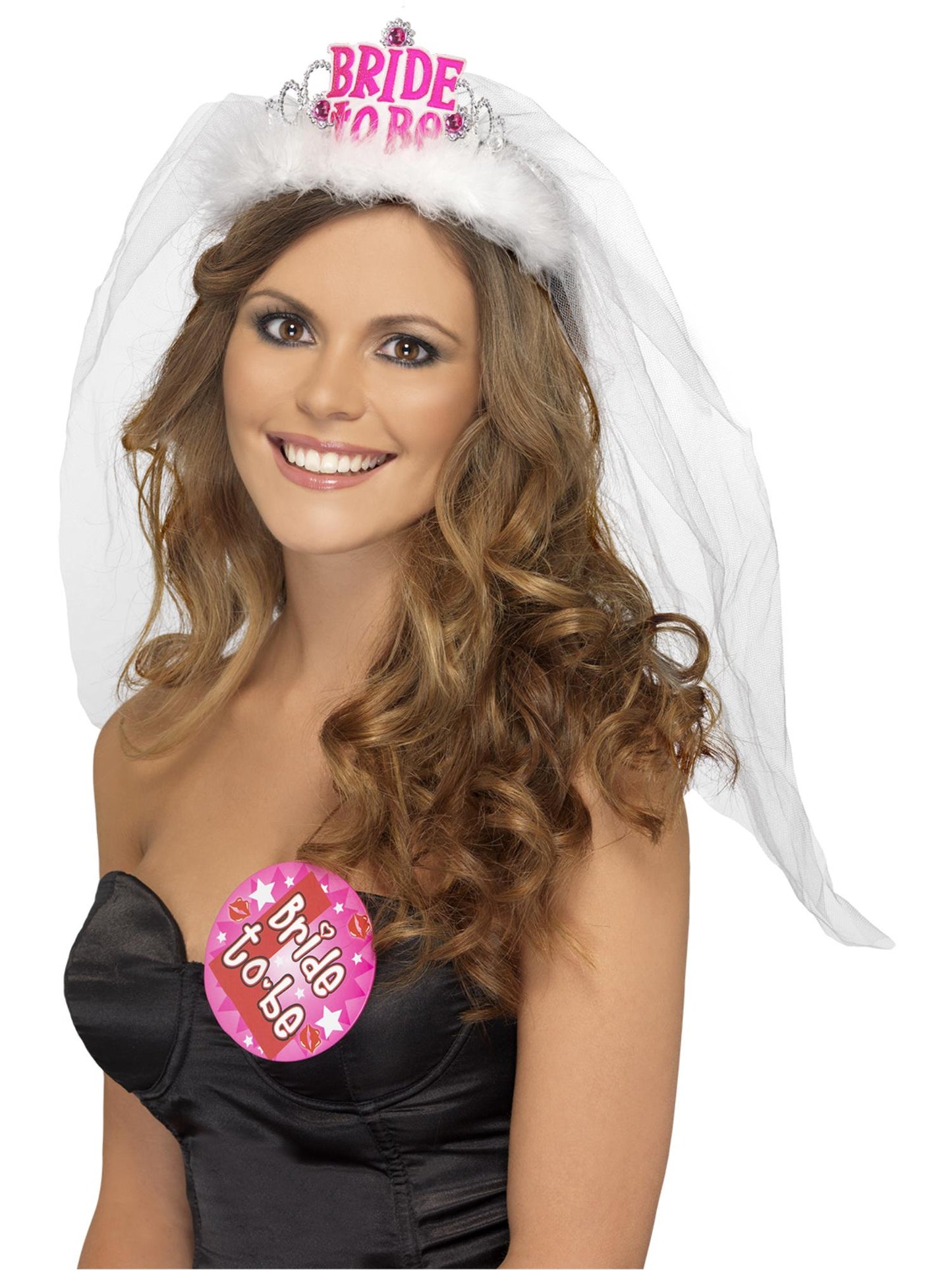 Bride to Be Tiara with Veil, White Wholesale