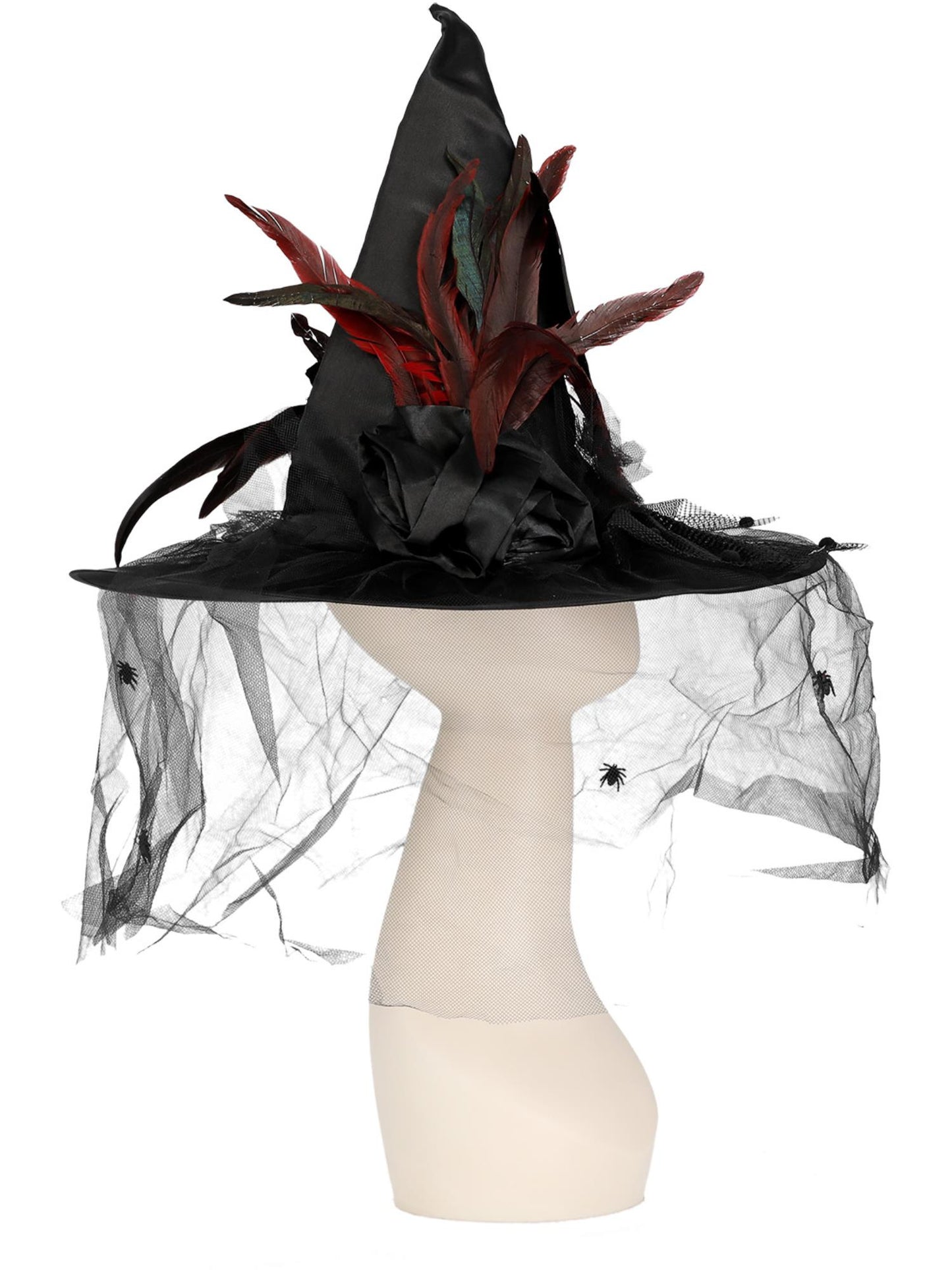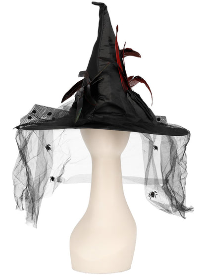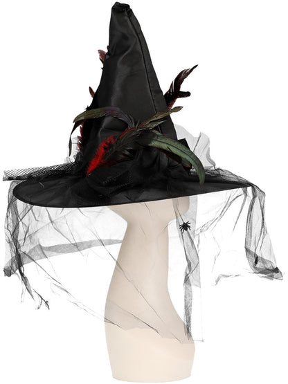 Witch Hat, Feathers & Netting, Black Deluxe