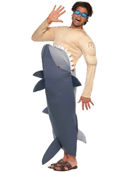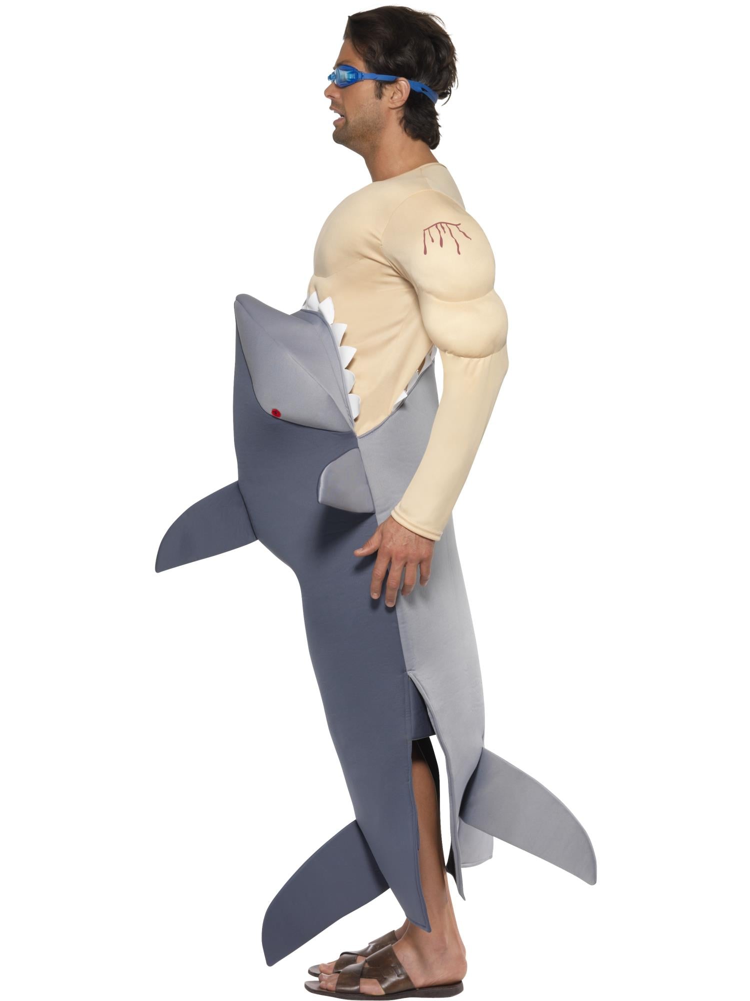 Man-Eating Shark Costume, Grey with Shark Bodysuit & Goggles