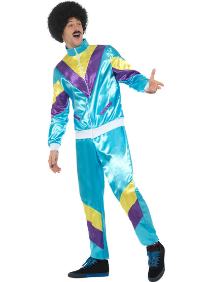 80s Height of Fashion Shell Suit Costume, Blue with Jacket & Trousers