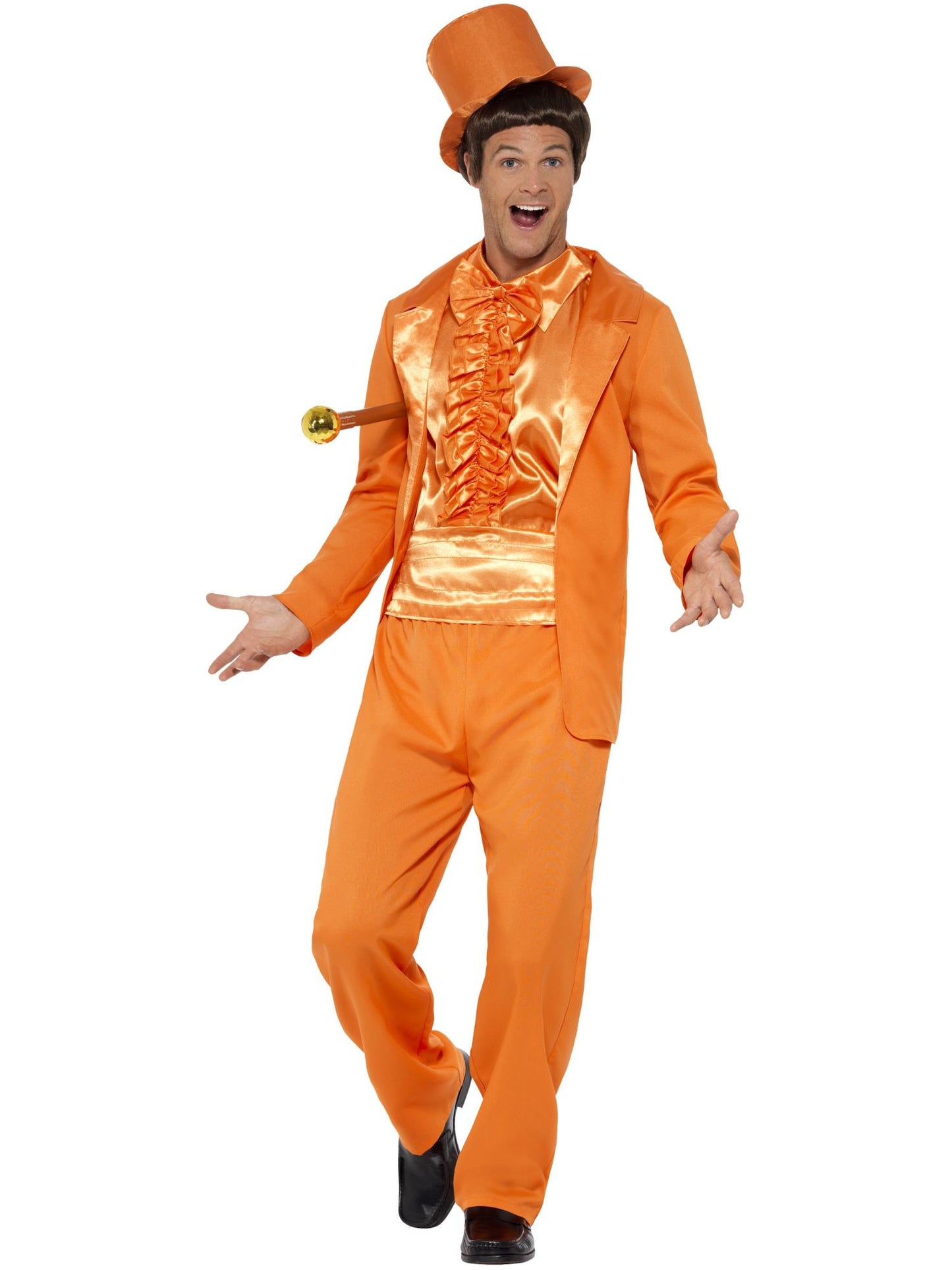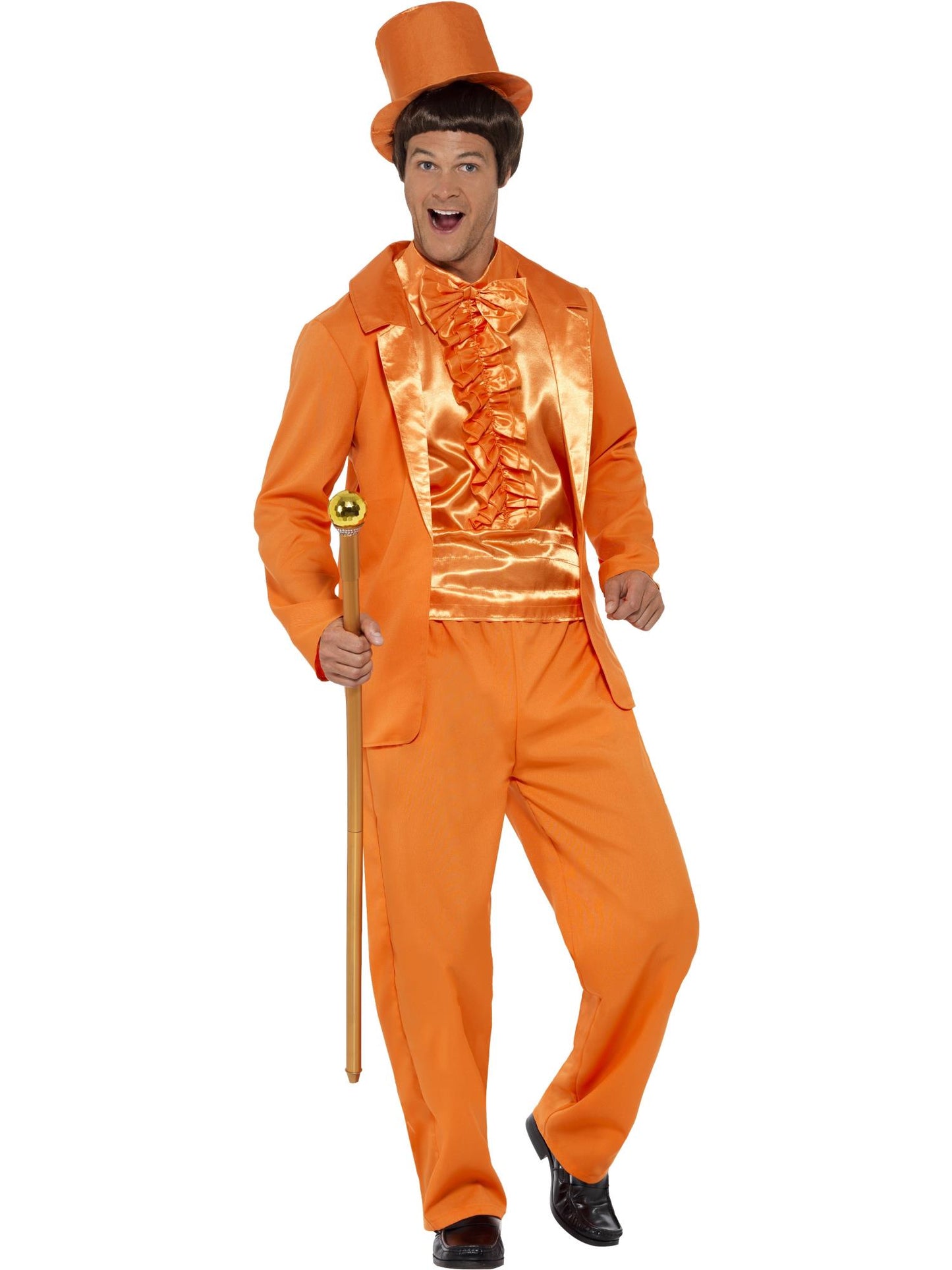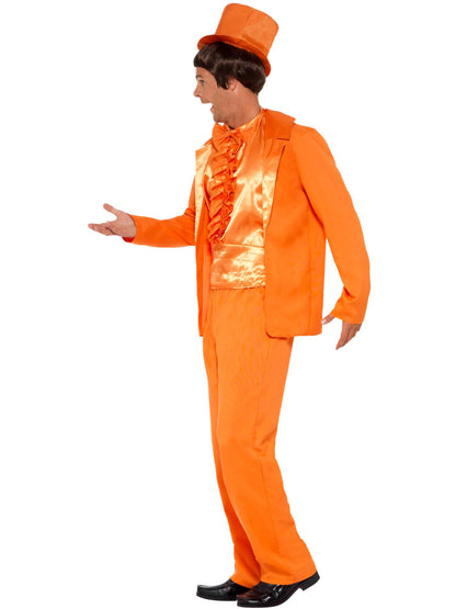 90s Stupid Tuxedo Costume, Orange with Jacket, Trousers, Mock Shirt & Hat