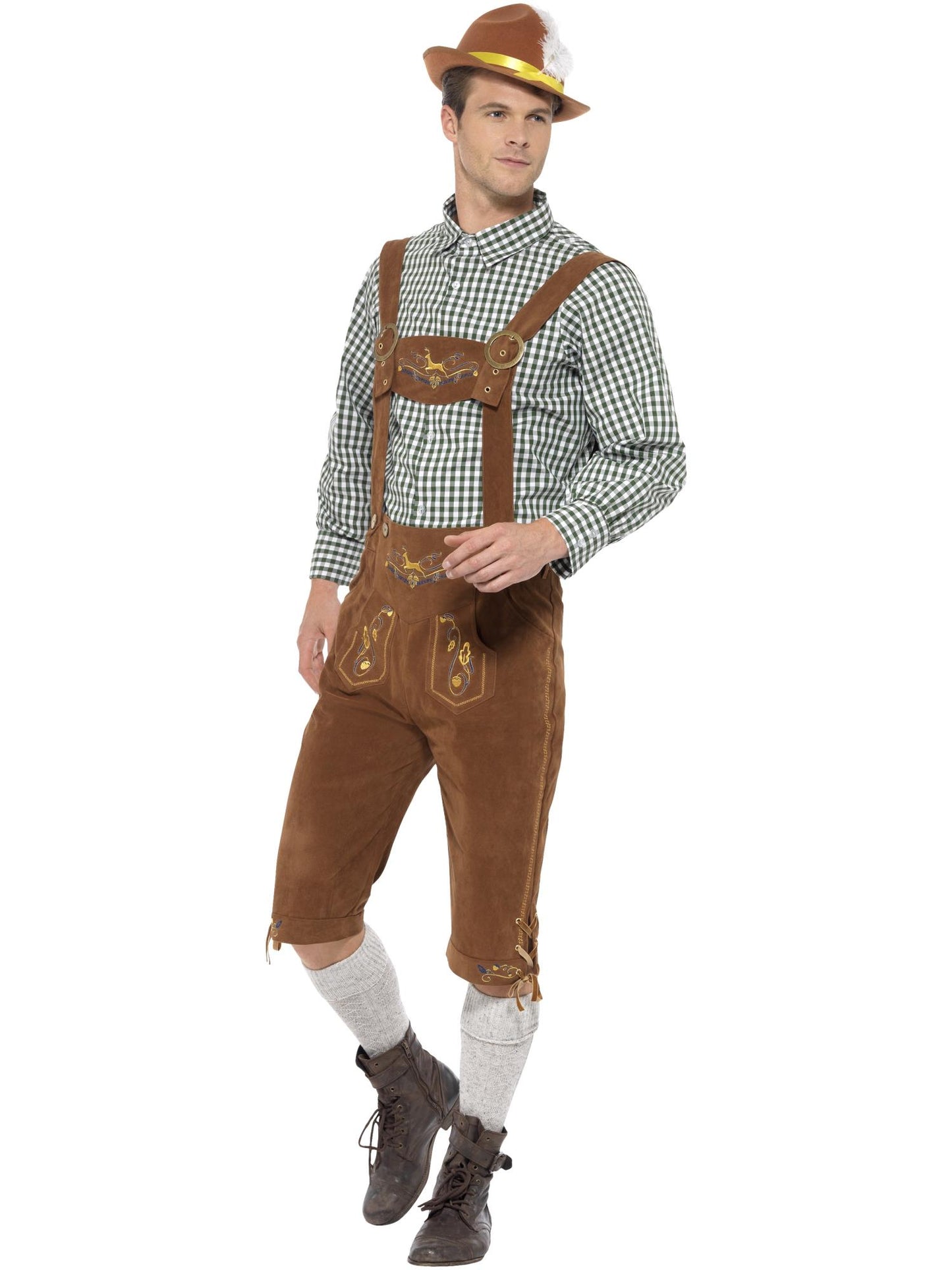Deluxe Traditional Hans Bavarian Costume, Green with Lederhosen & Shirt