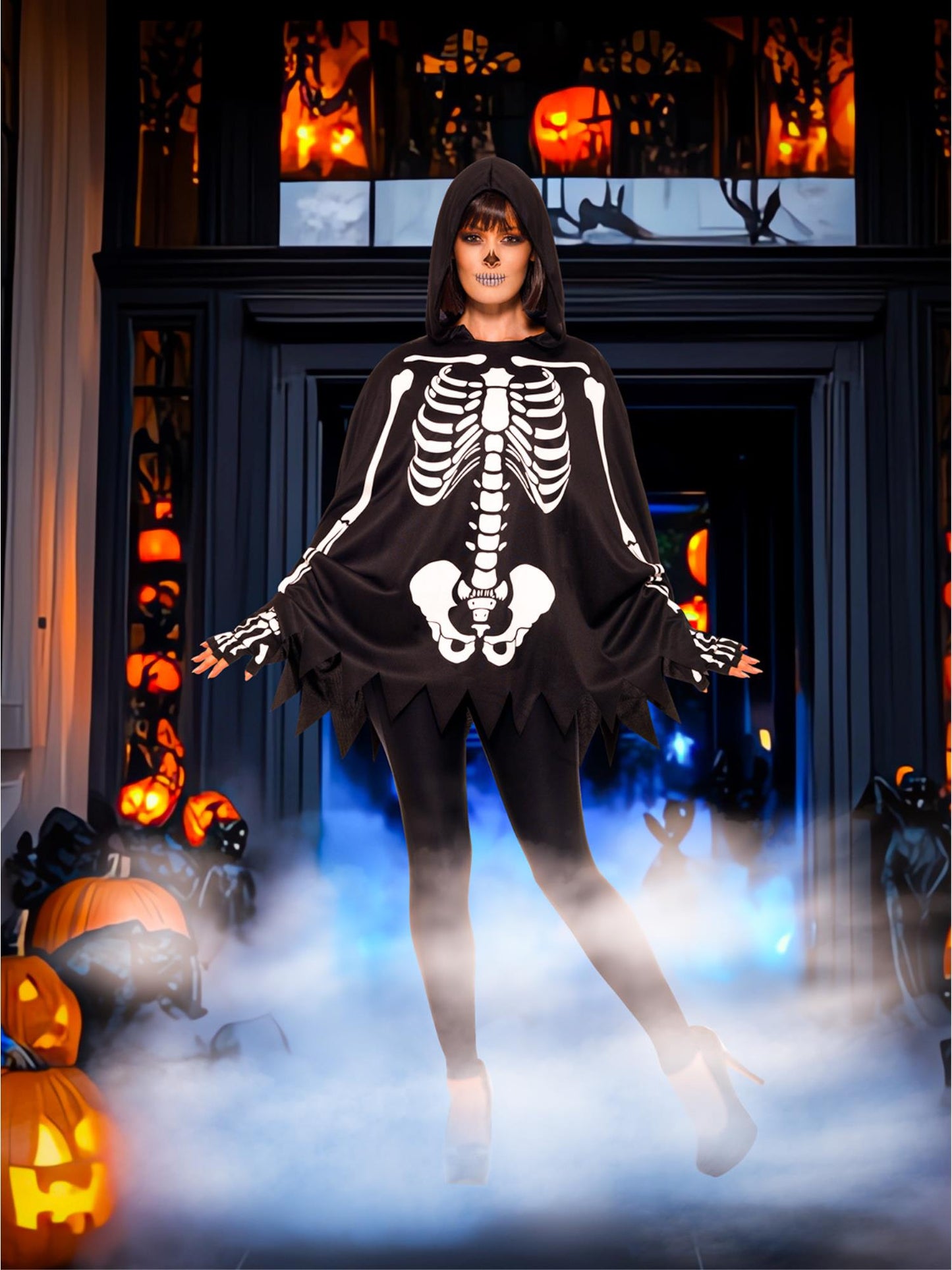 Skeleton Kit, Unisex, Black with Poncho & Gloves