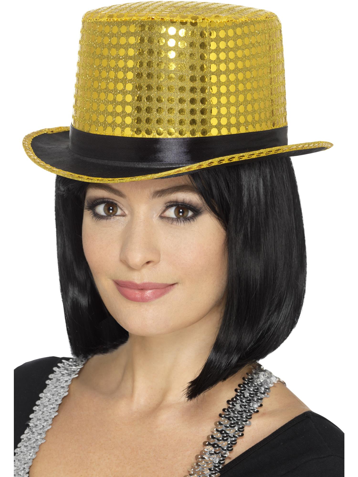 Sequin Top Hat, Gold with Elastic Inner Rim