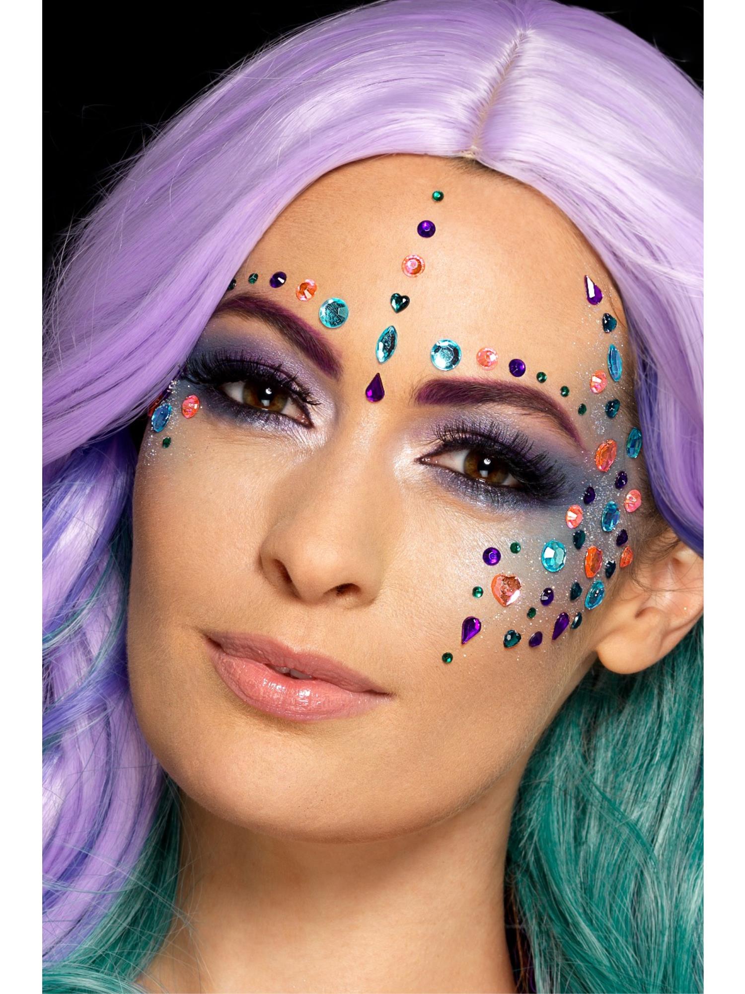 Smiffys Make-Up FX, Pastel Jewel Face Gems, Purple Sheet of 100 Assorted, Self Adhesive
