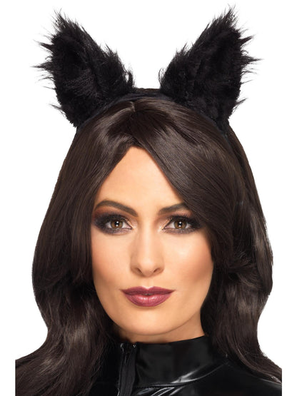 Long Pile Fur Cat Ears, Black Wholesale