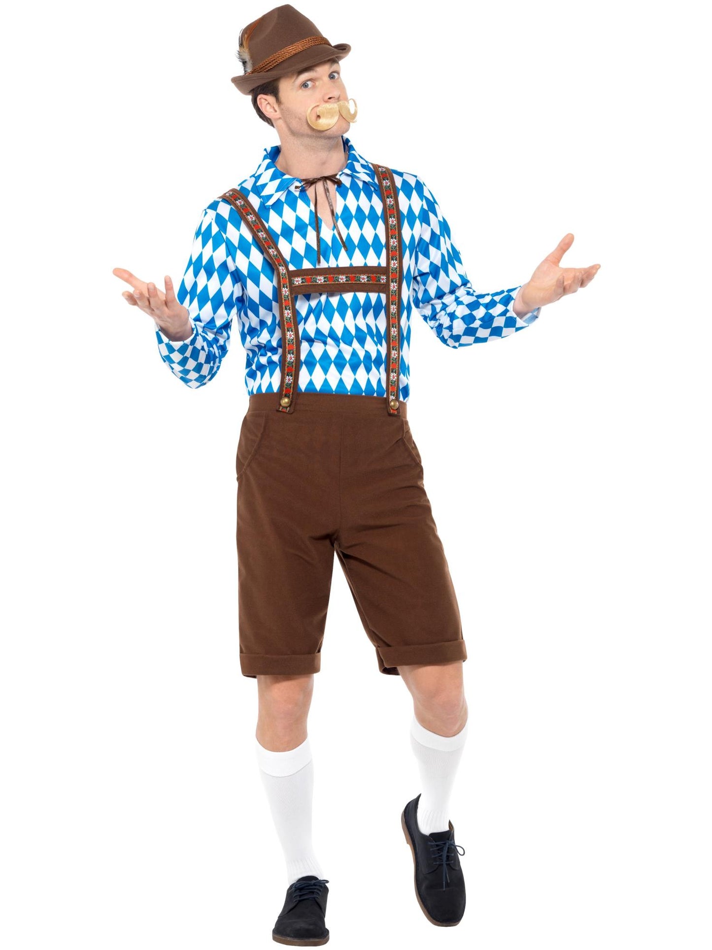 Bavarian Beer Man Costume, Blue & Brown with Shirt & Lederhosen
