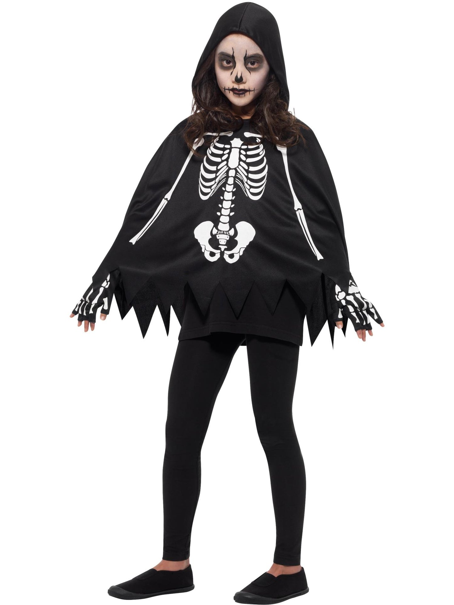 Kids Unisex Skeleton Poncho, with Gloves