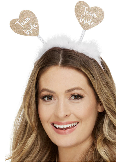 Team Bride Heart Boppers, White with Gold Hearts & Marabou