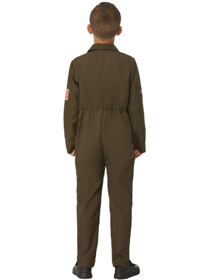 Top Gun Maverick Child's Aviator Costume, Green with Jumpsuit & Changeable Name Badges