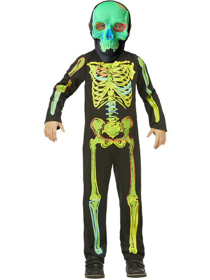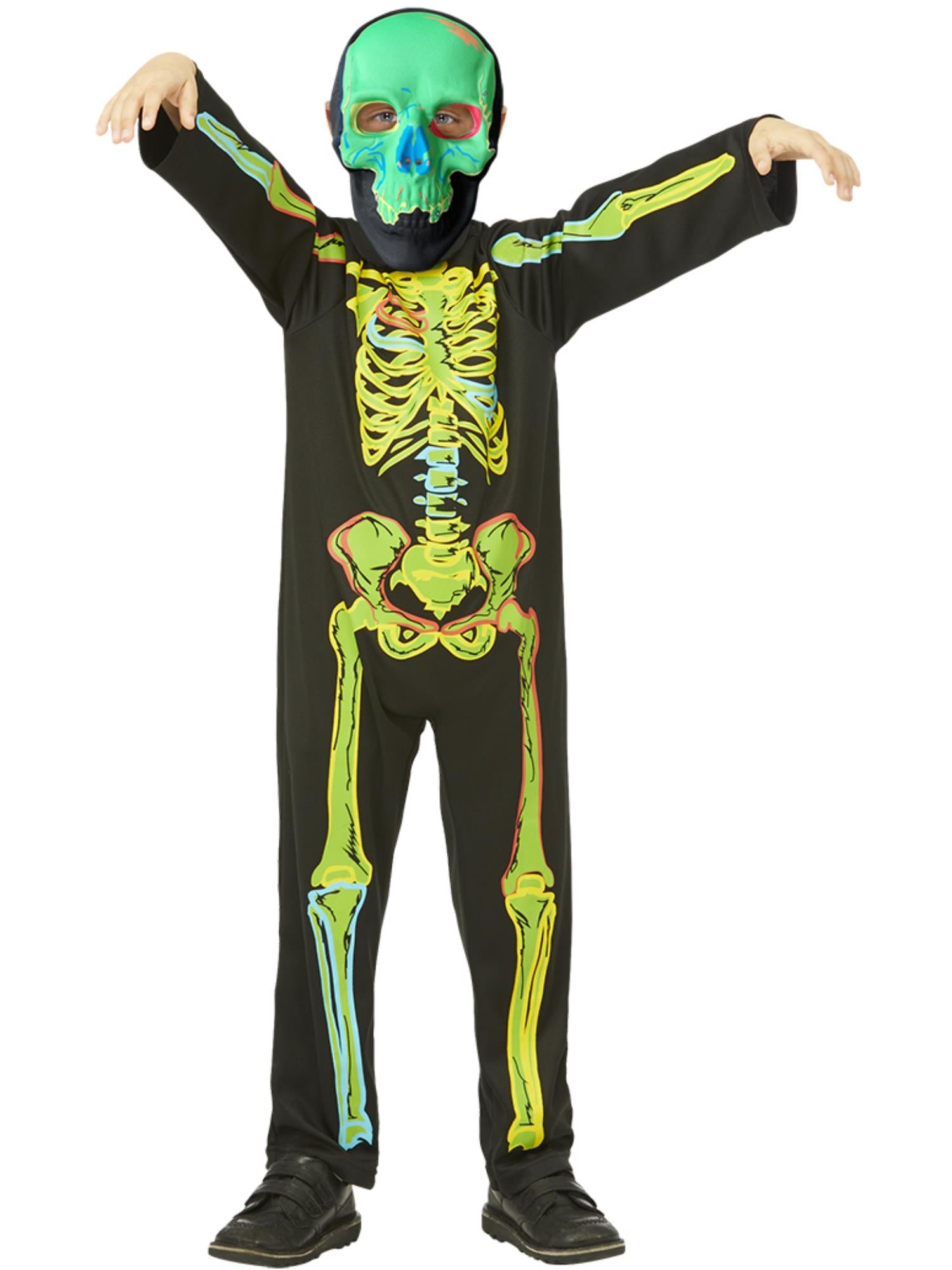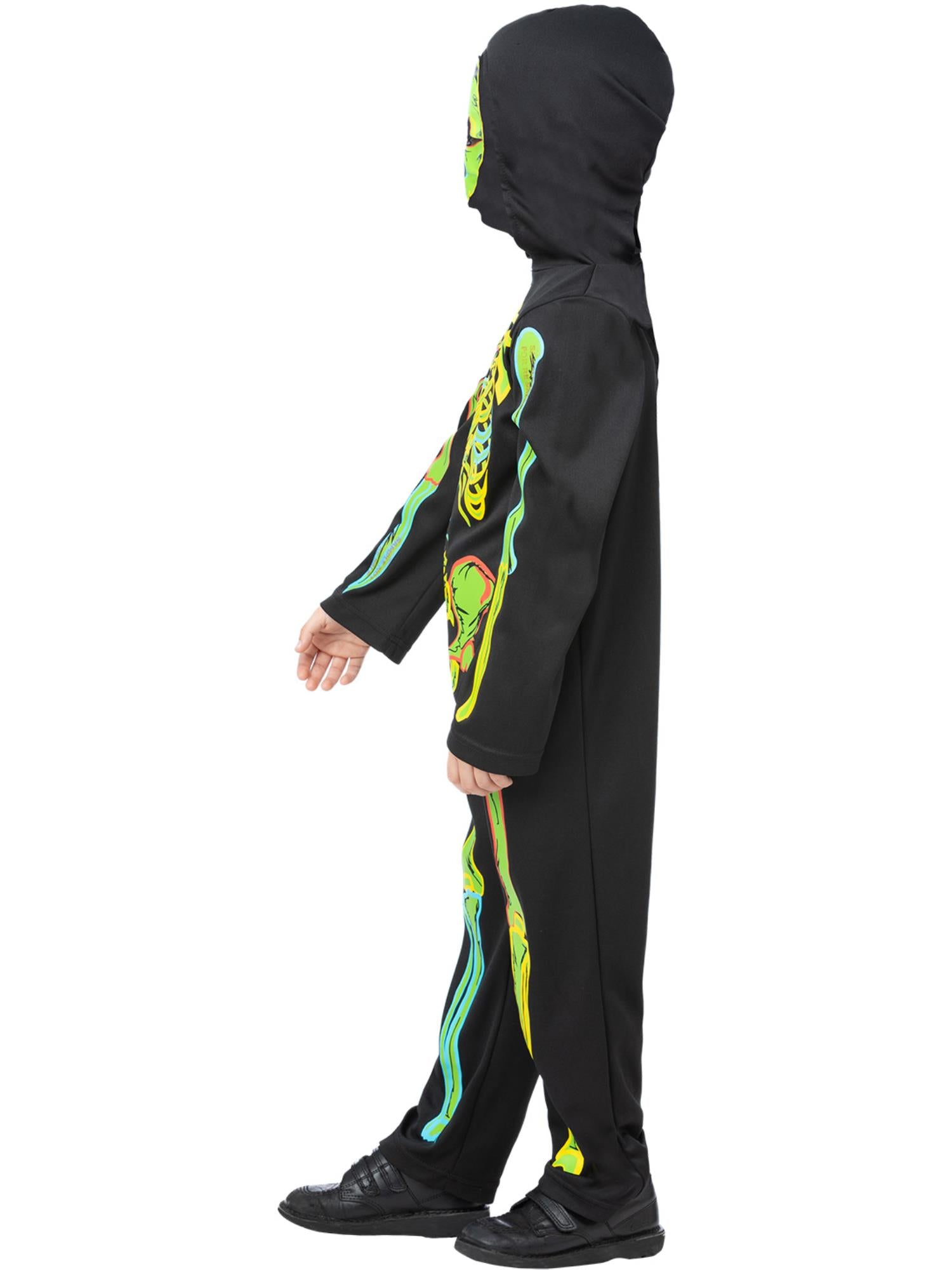 Neon Skeleton Glow in the Dark Costume All in One & Mask