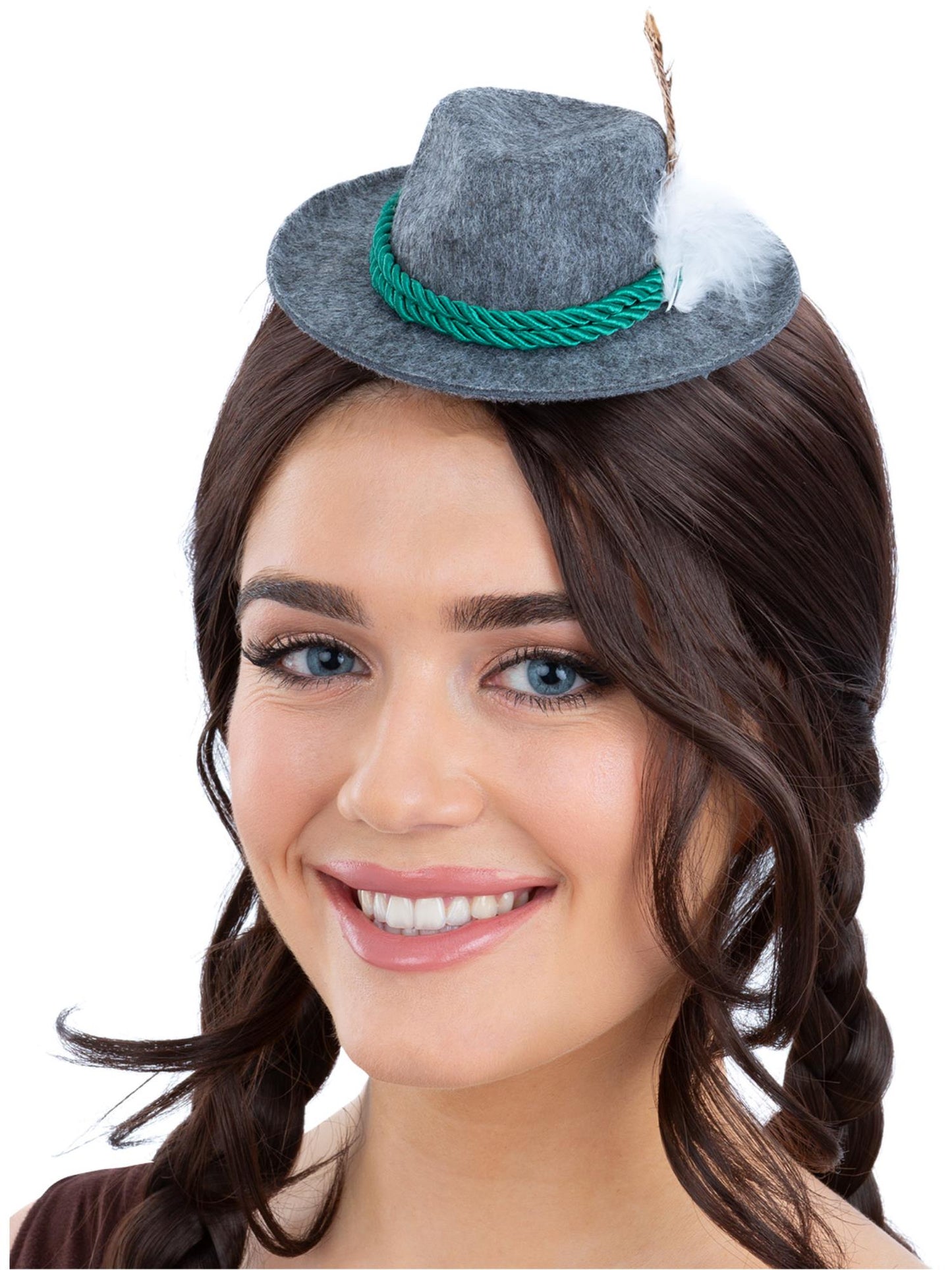 Mini Bavarian Trenker Hat, Grey with Hair Clips