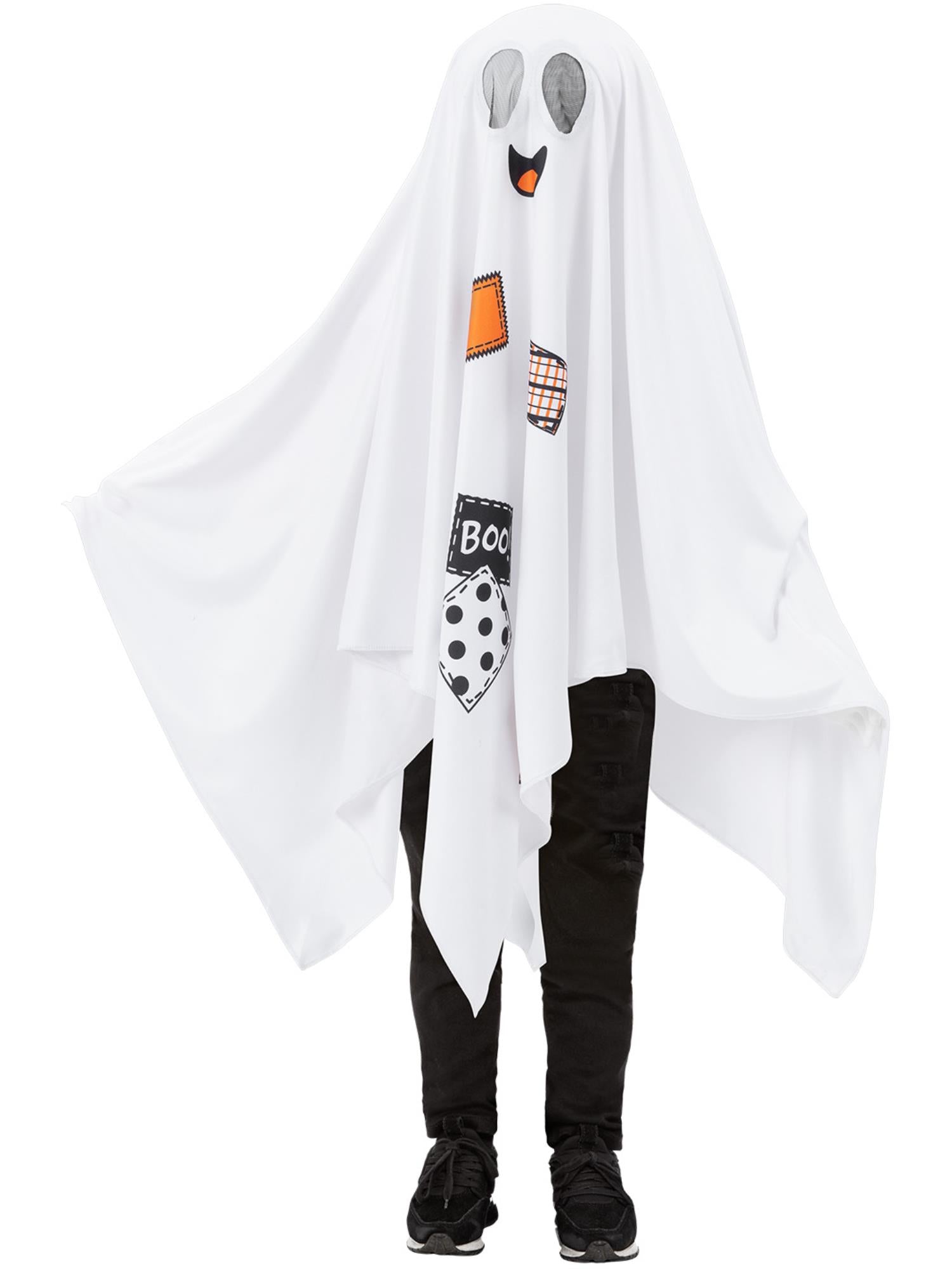 Boo Ghost Costume Hooded Poncho with Internal Headband