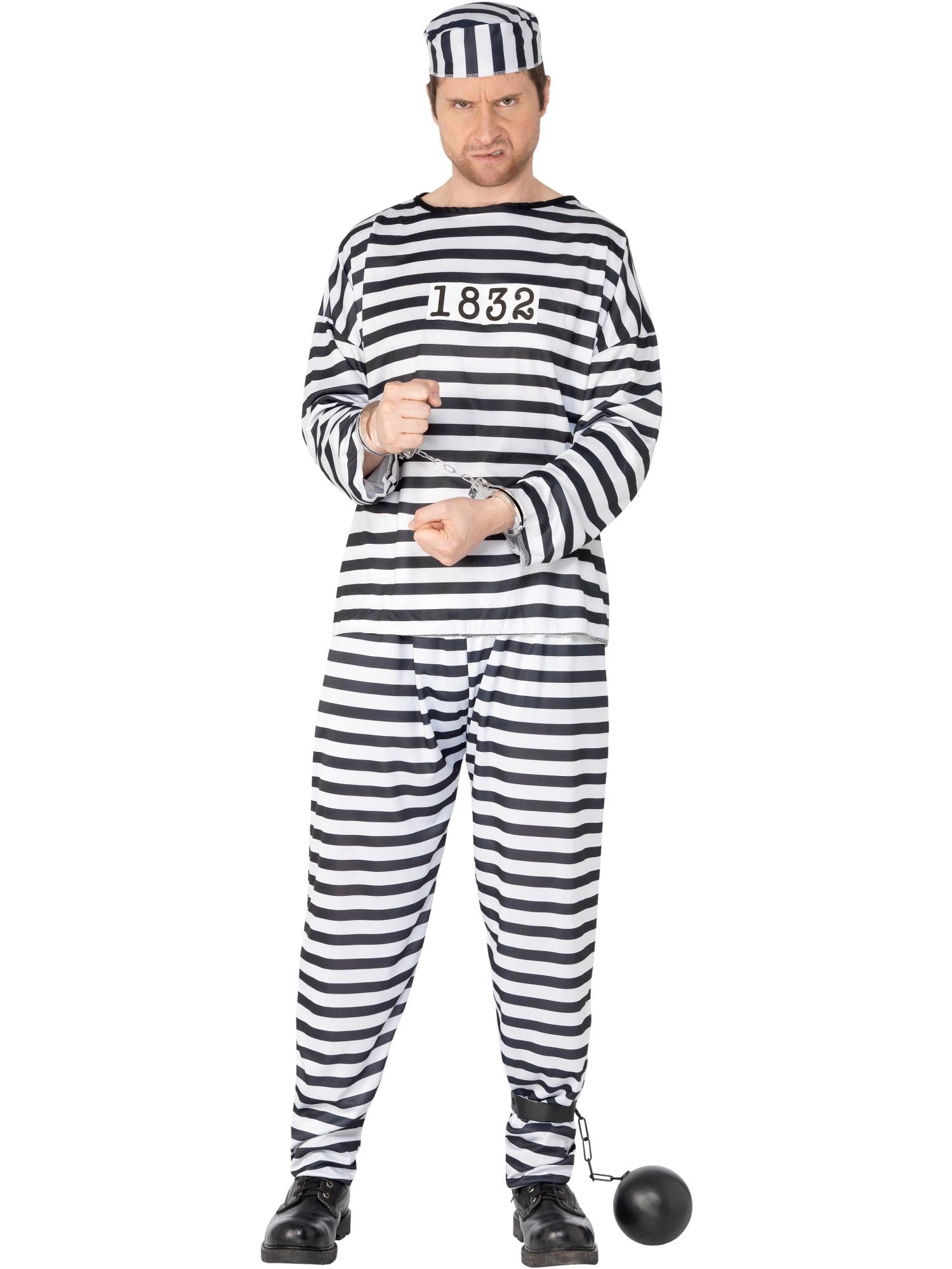 Convict Costume, Black & White with Shirt, Trousers & Hat