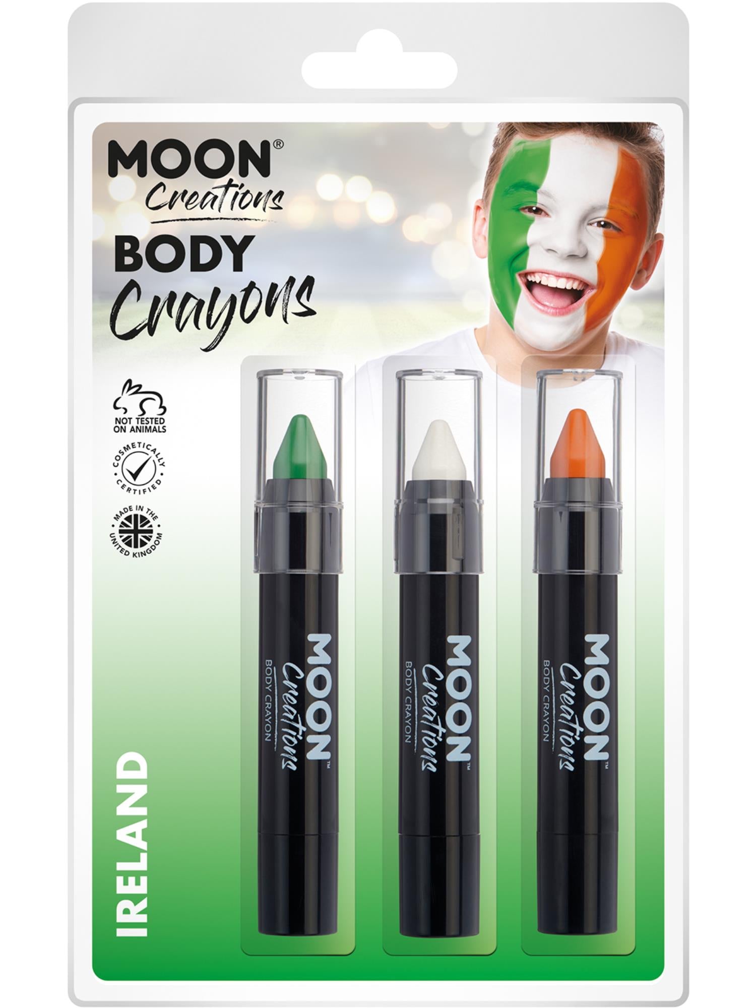 Moon Creations Body Crayons, 3.2g Clamshell, Ireland - Green, White, Orange