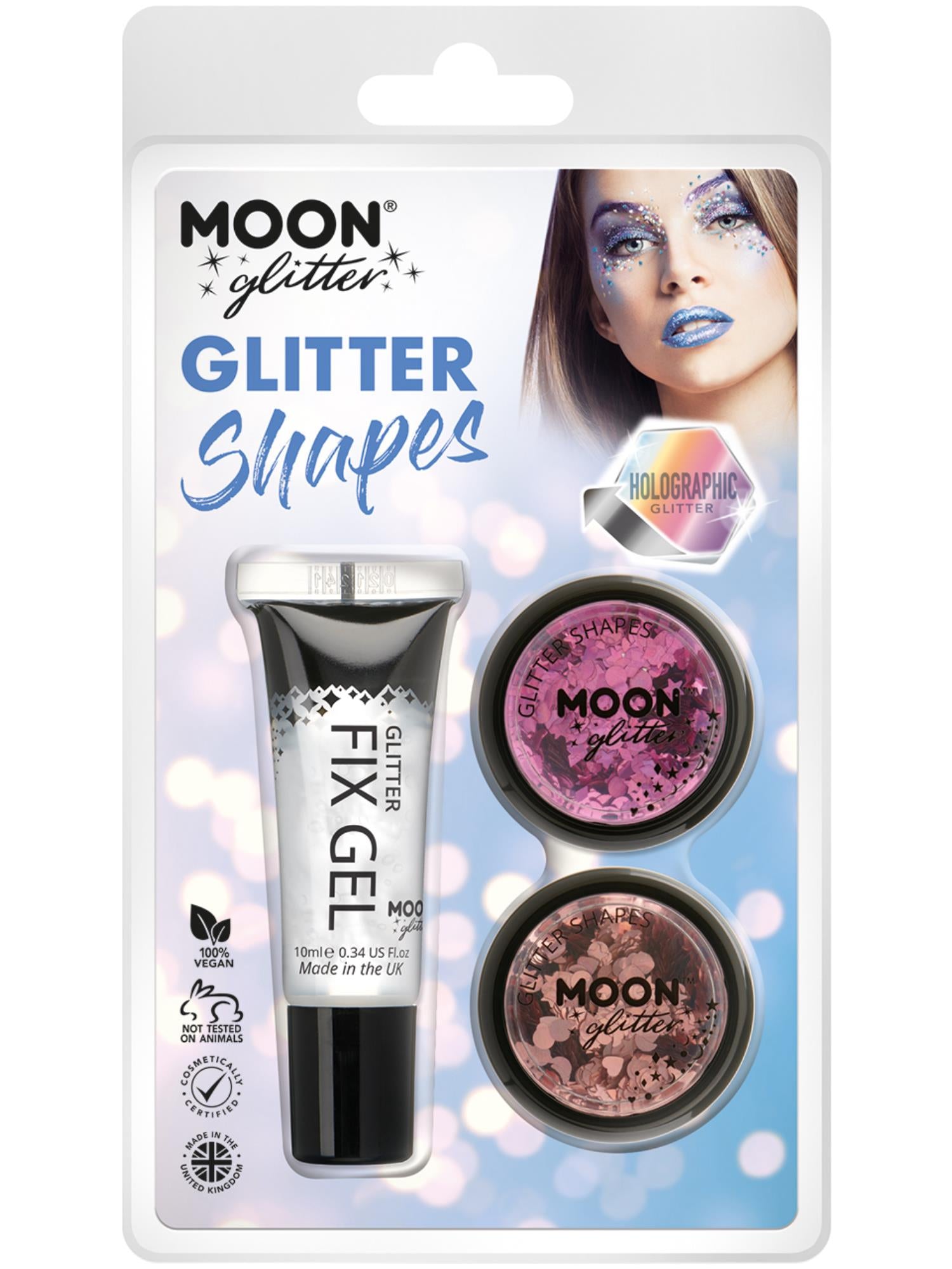Moon Glitter Holographic Glitter Shapes, Clamshell, 3g - Fix Gel, Pink, Rose Gold