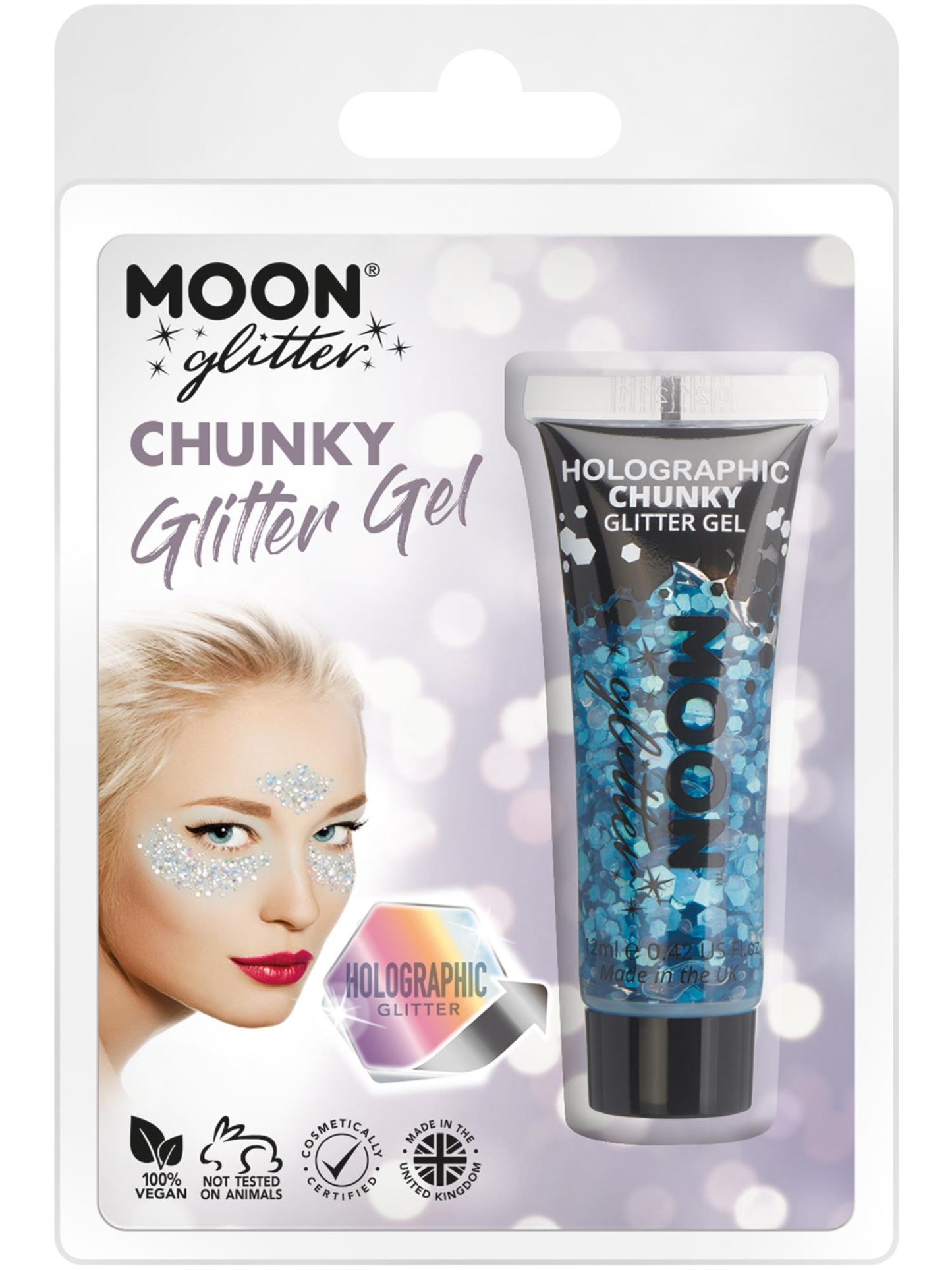 Moon Glitter Holographic Chunky Glitter Gel Blue, Clamshell, 12ml